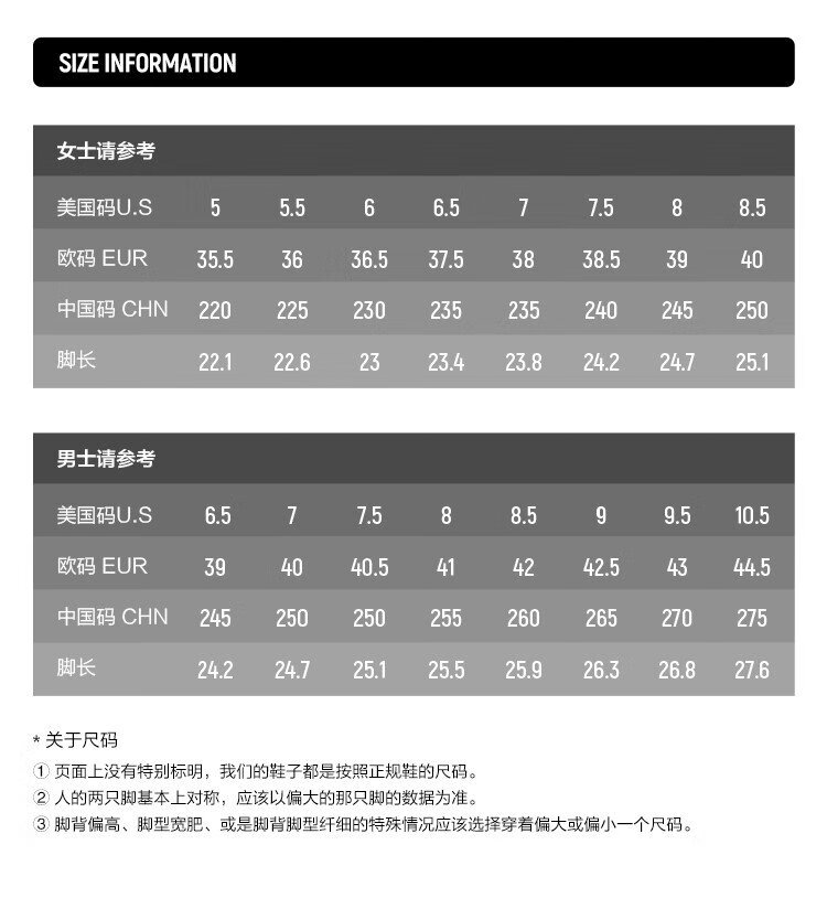 China (cm) 36 - 37 38 - 39 40 - 42 43 - 44 45 - 47