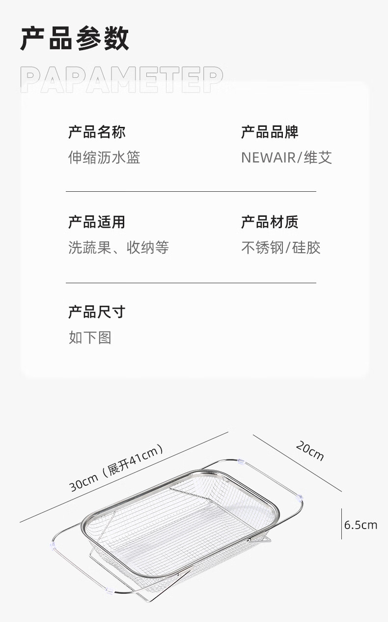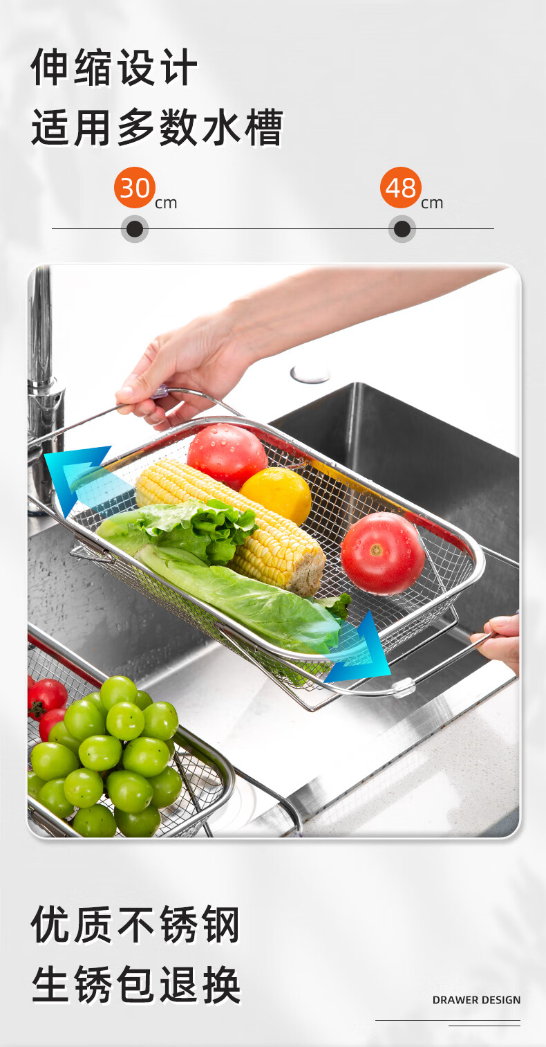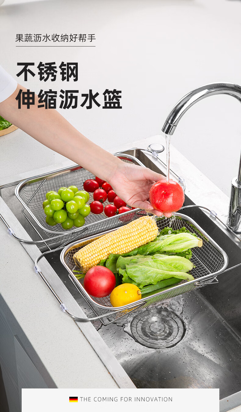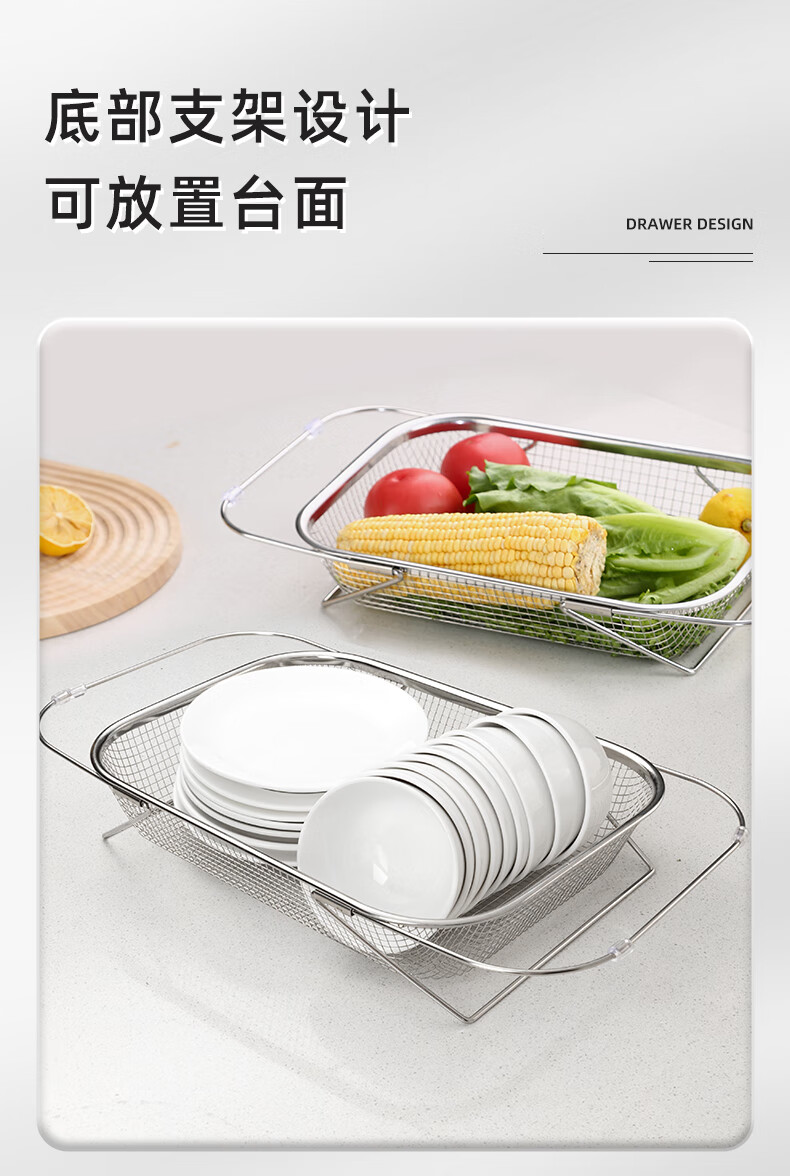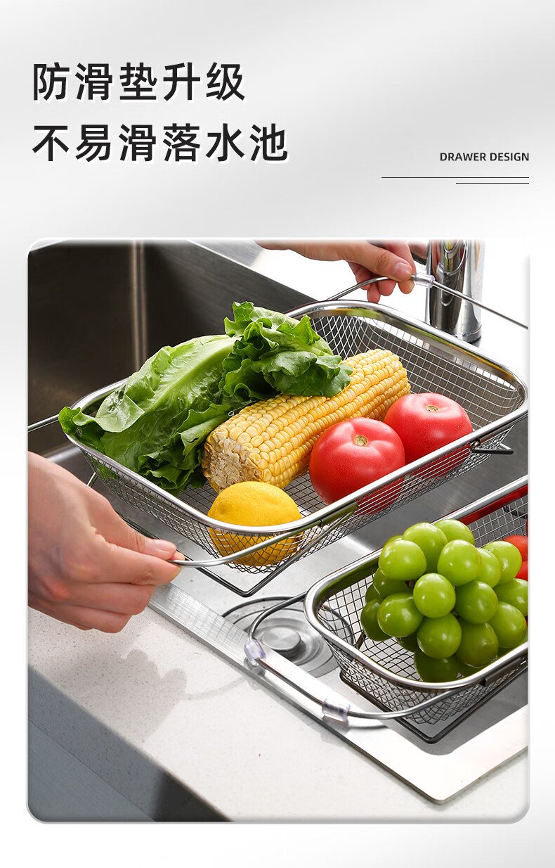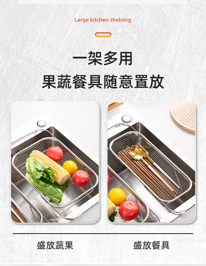 Newair stainless steel drain basket sink drain rack retractable dish rack sink fruit and vegetable washing basket storage rack