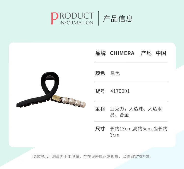 Chimera (CHIMERA) French bead frosted hair clip for women on the back of the head, shark clip, hair accessories, hair clip, birthday gift for girls