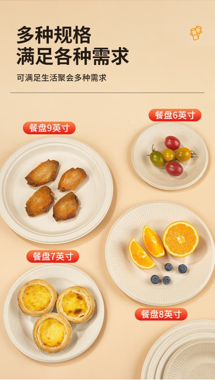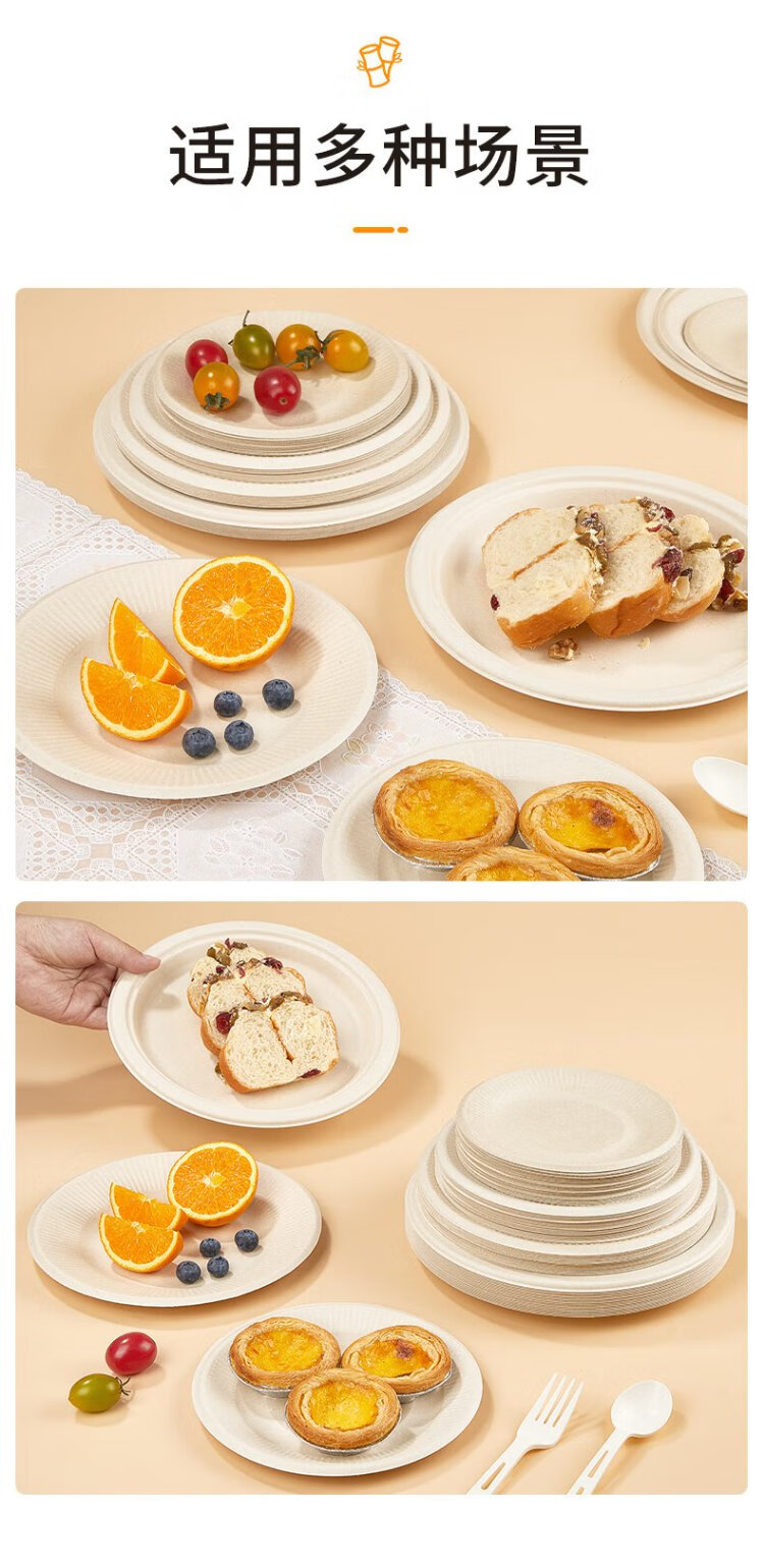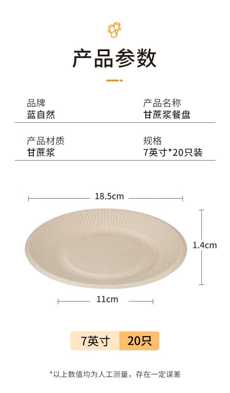 Blue natural disposable tableware plates 7 inches 20-pack paper plates biodegradable outdoor picnic camping barbecue paper plates