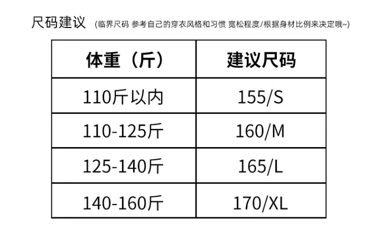 China (cm) 160-165/84-86 165-170 / 88-90 167-172 / 92-96 168-173 / 98-102 170-176 / 106-110