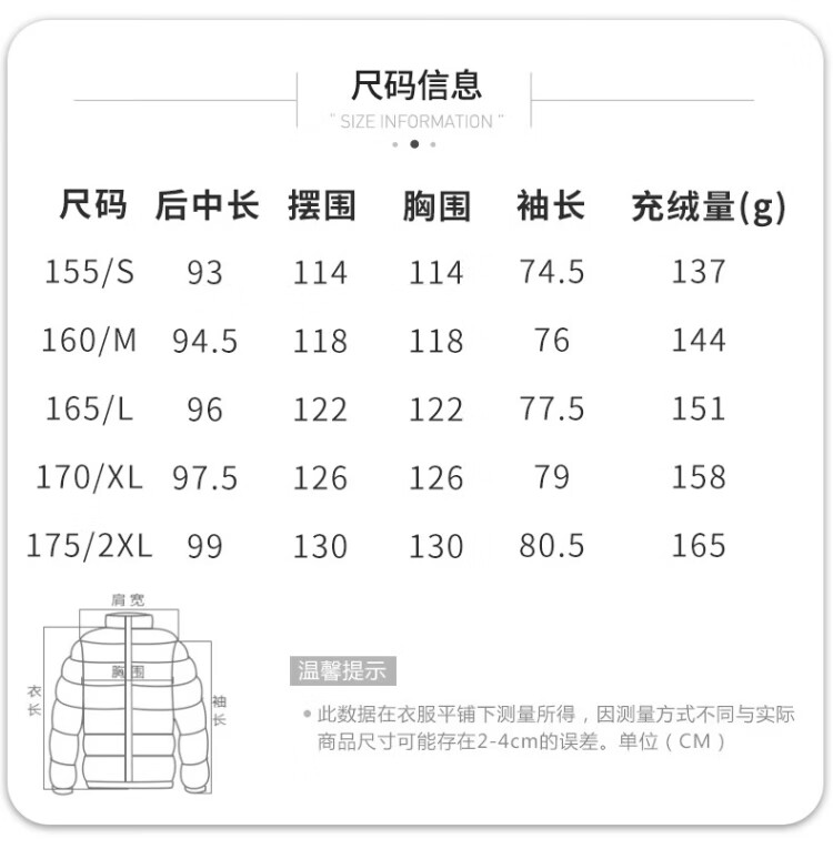 China (cm) 165 / 88-90 170 / 96-98 175 / 108-110 180 / 118-122 185 / 126-130