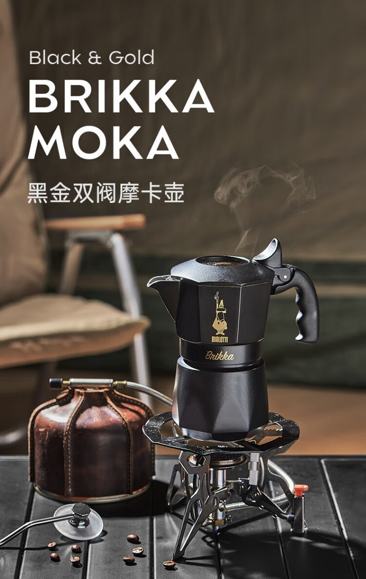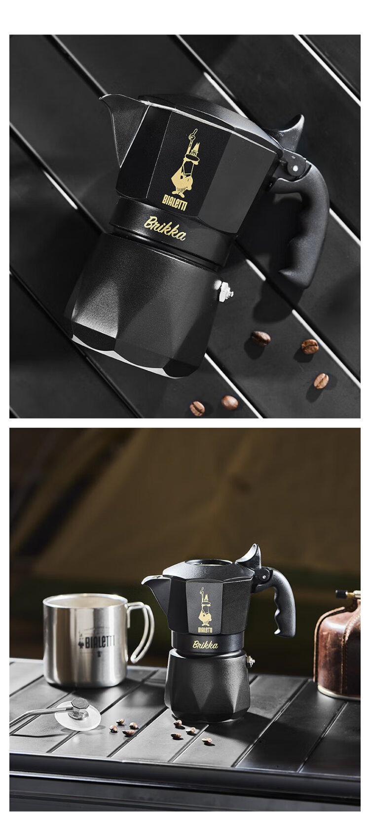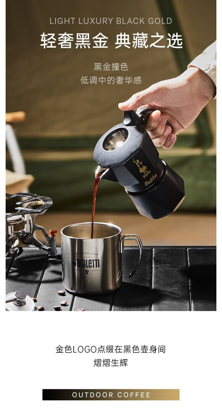 Bialetti Moka Pot Hand-brewed Italian Coffee Pot Italian Double Valve Espresso Portable Black Gold 2 Cups