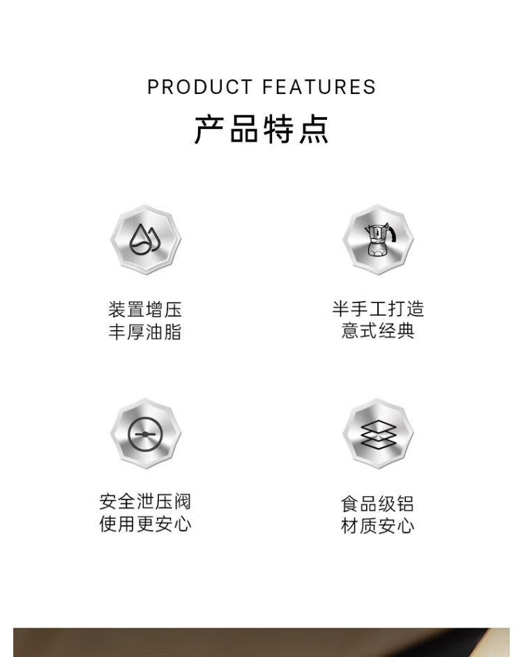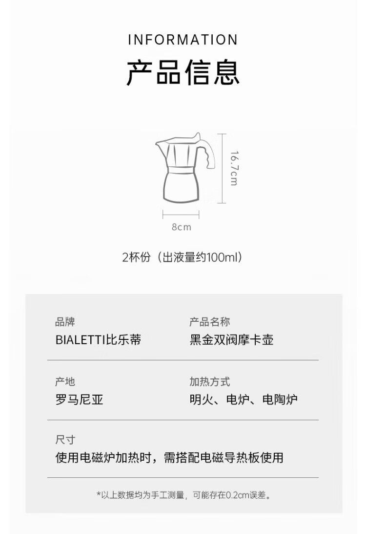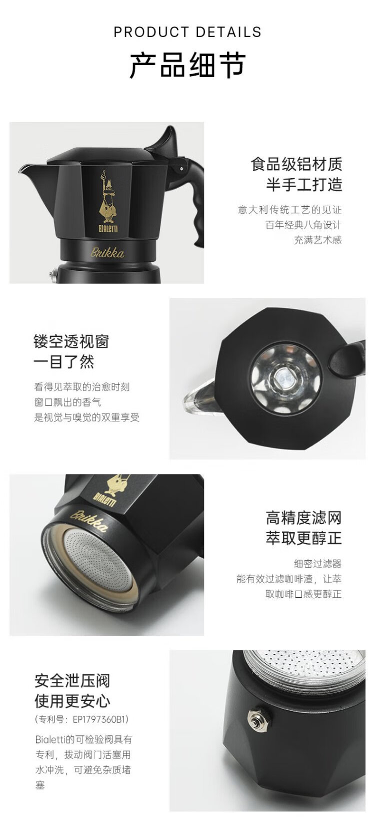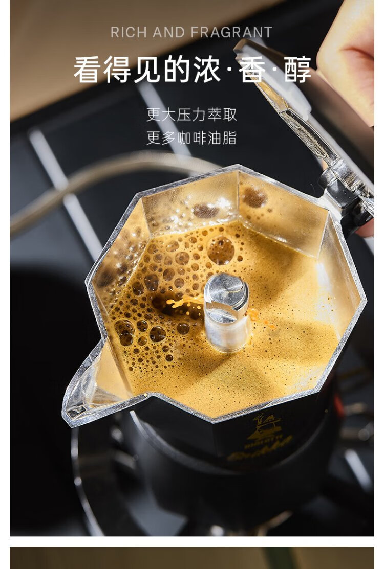 Bialetti Moka Pot Hand-brewed Italian Coffee Pot Italian Double Valve Espresso Portable Black Gold 2 Cups