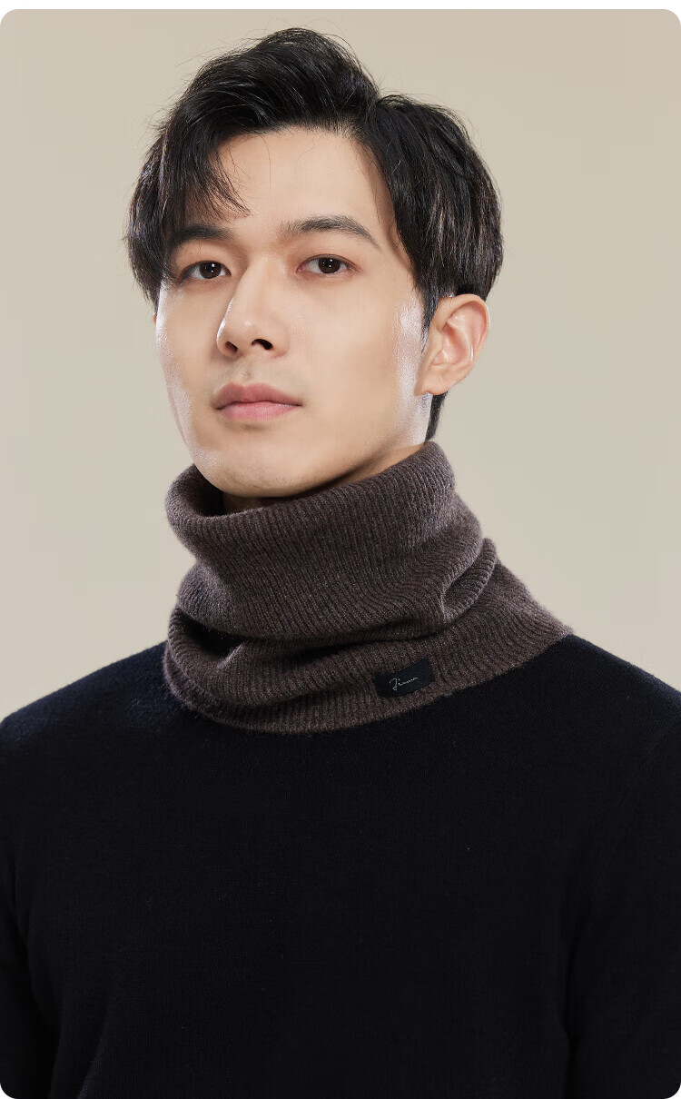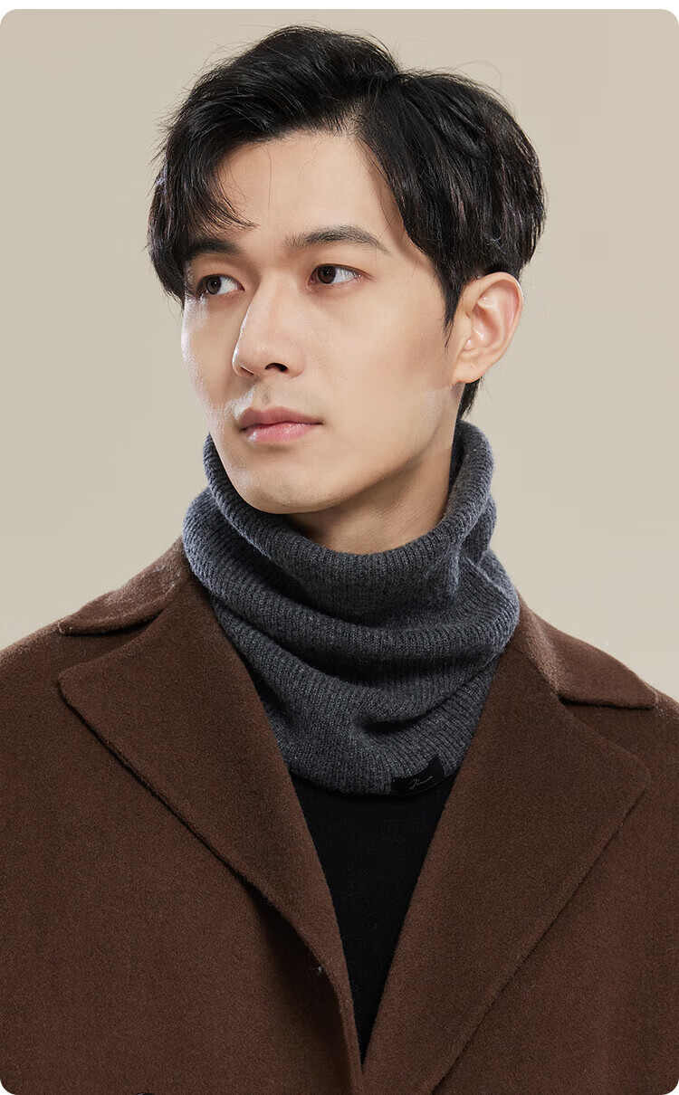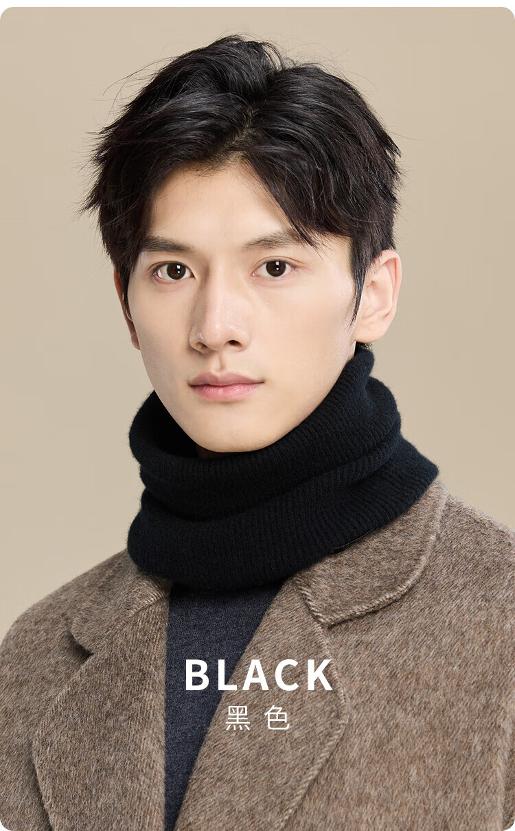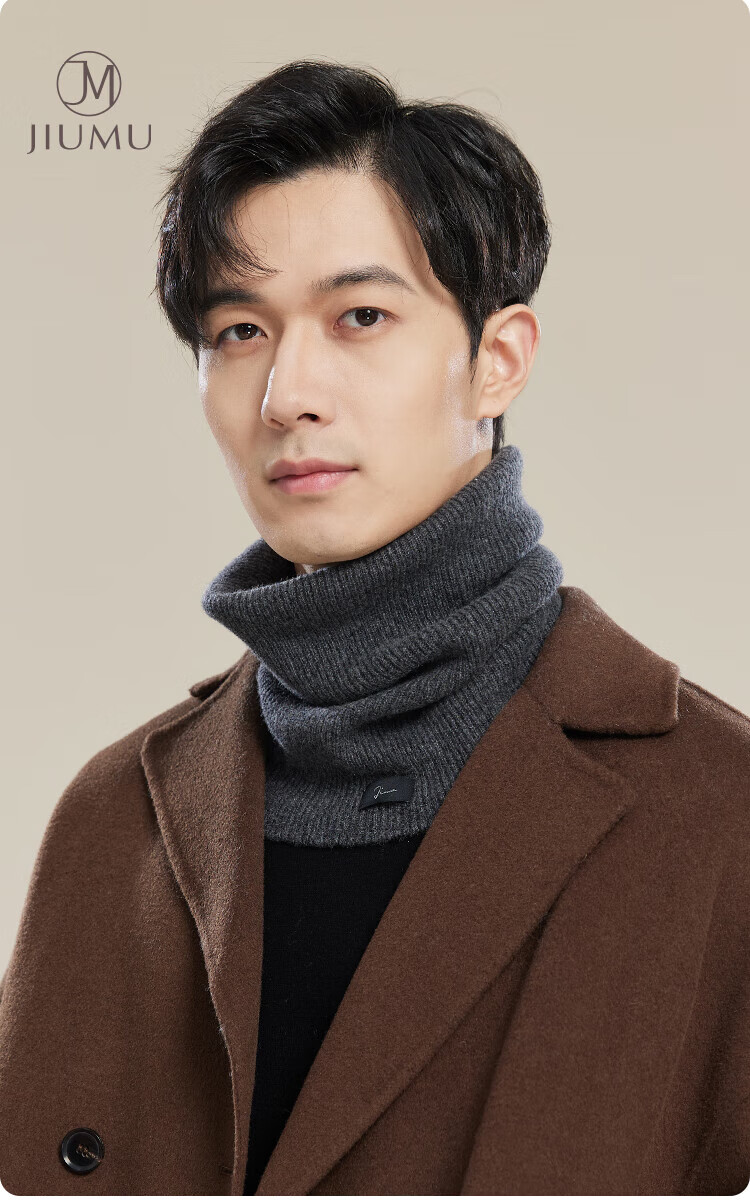 JIUMU 100% Cashmere Warm Scarf Men's Autumn and Winter Boys Cycling Hood Neck Cover Outdoor Neck Warmer Scarf Men's Winter