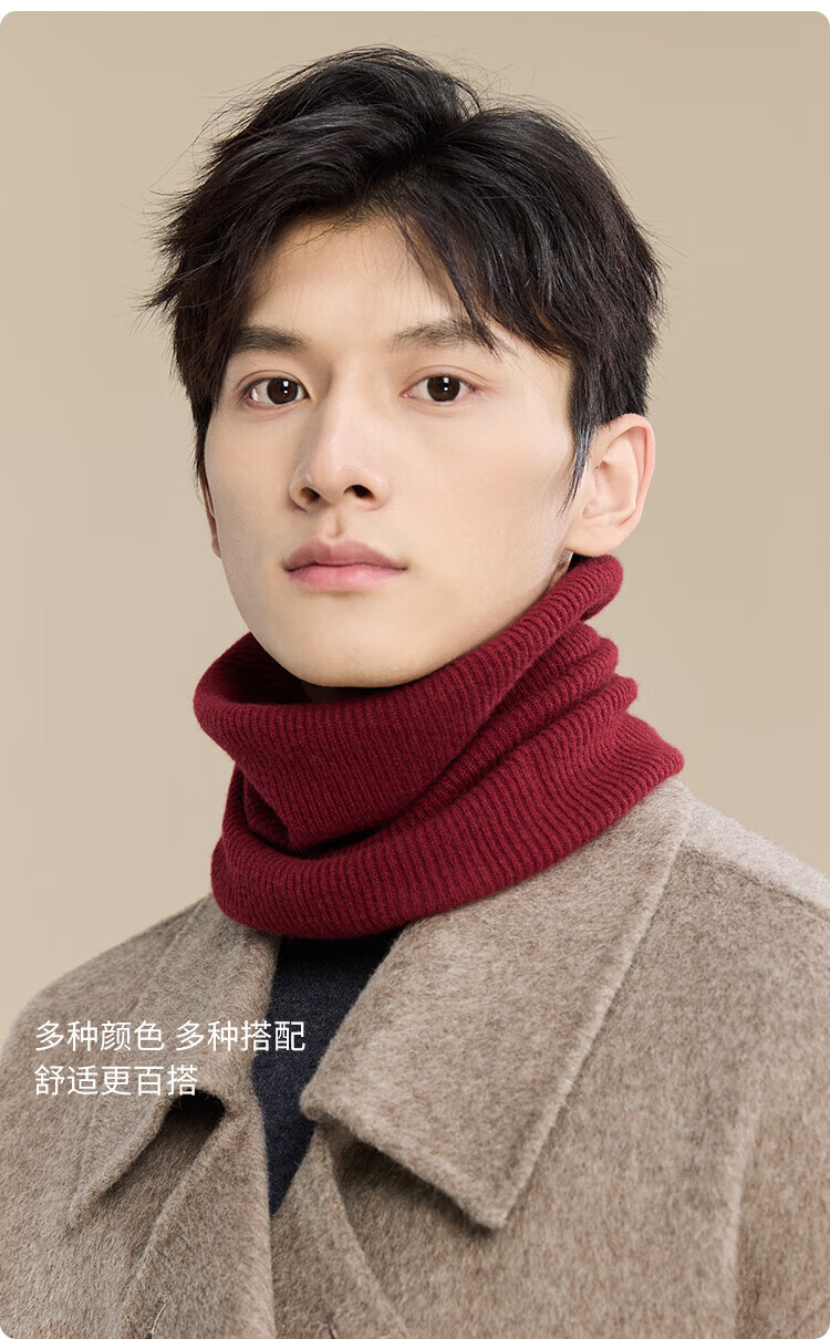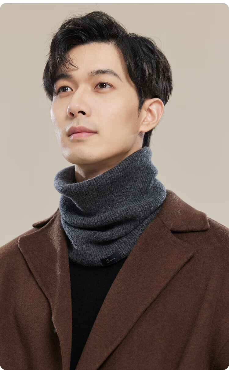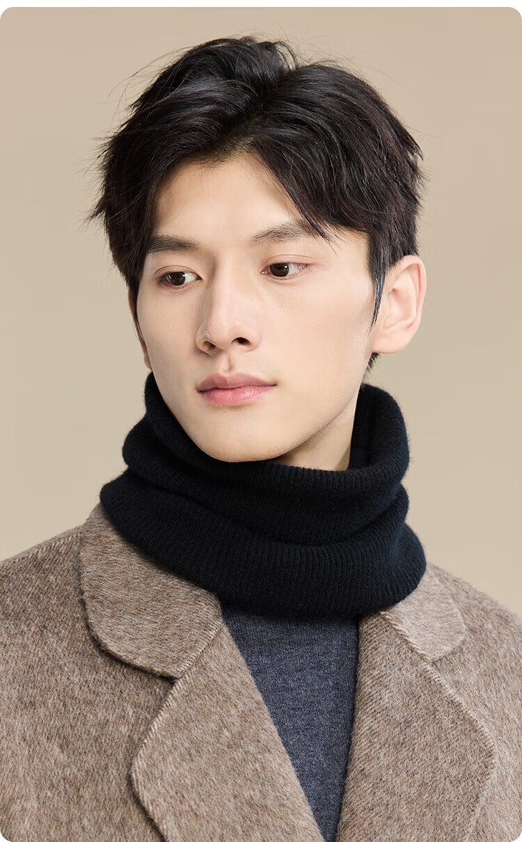 JIUMU 100% Cashmere Warm Scarf Men's Autumn and Winter Boys Cycling Hood Neck Cover Outdoor Neck Warmer Scarf Men's Winter