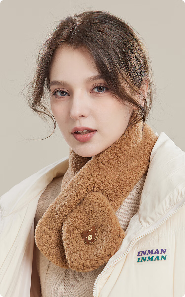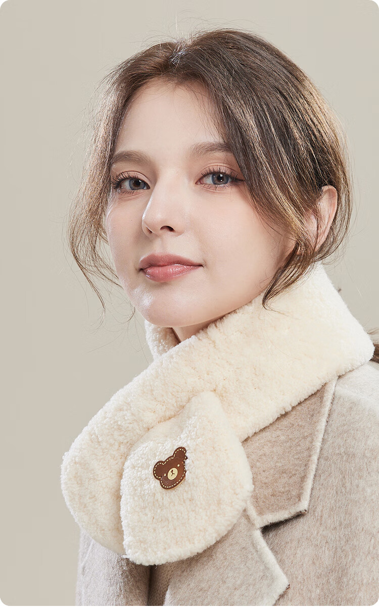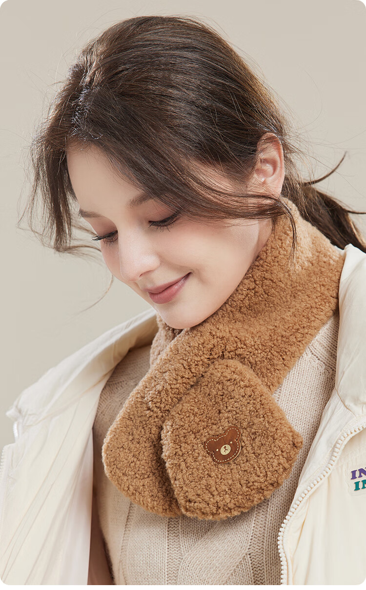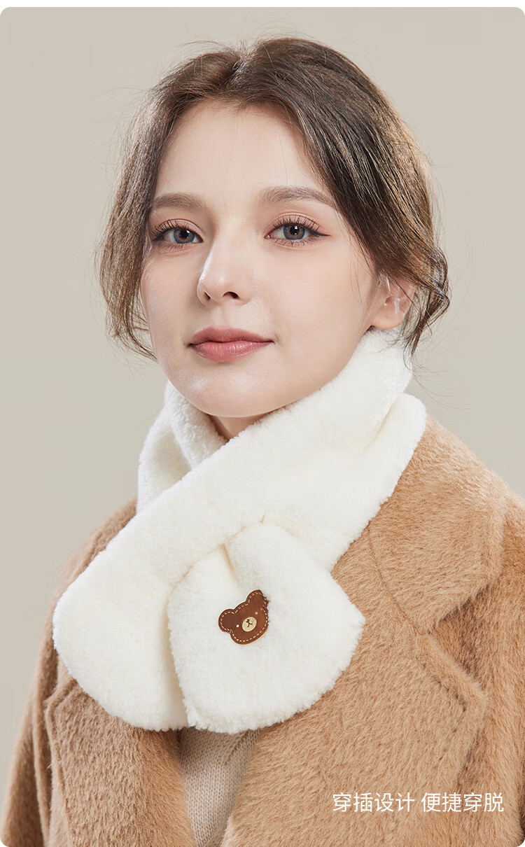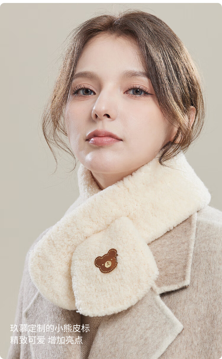 JIUMU sheep wool small scarf for women autumn and winter warm neck scarf and neck protection short scarf for girls birthday gift gift box