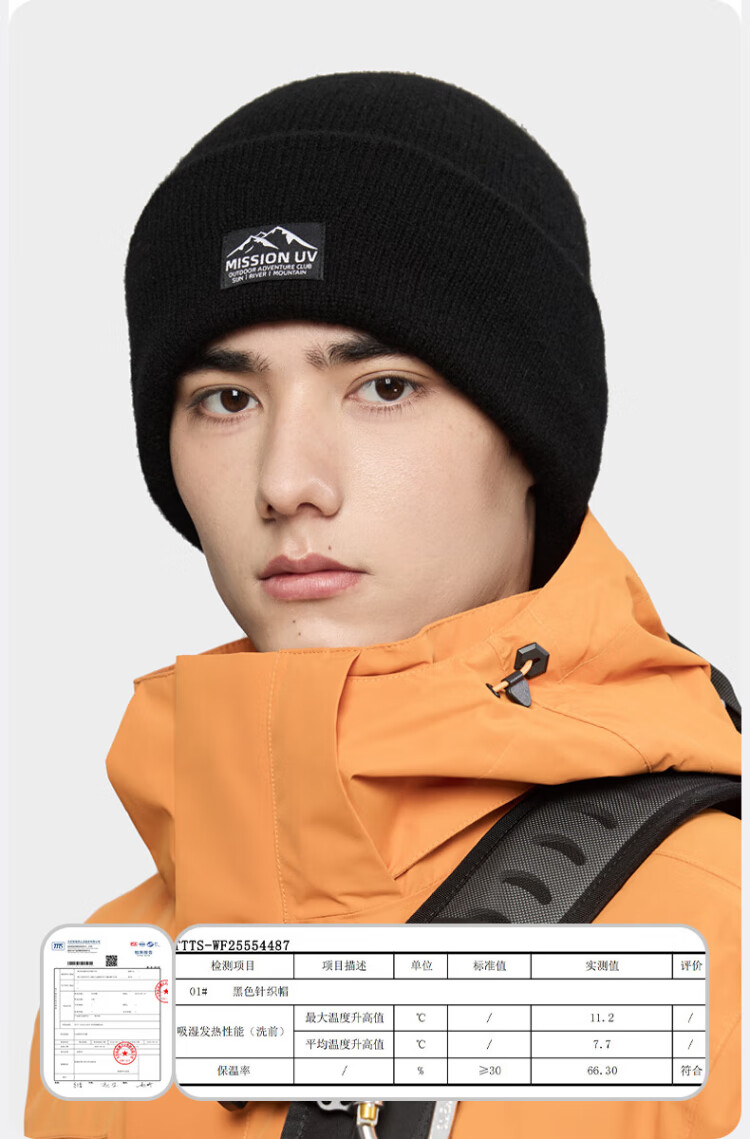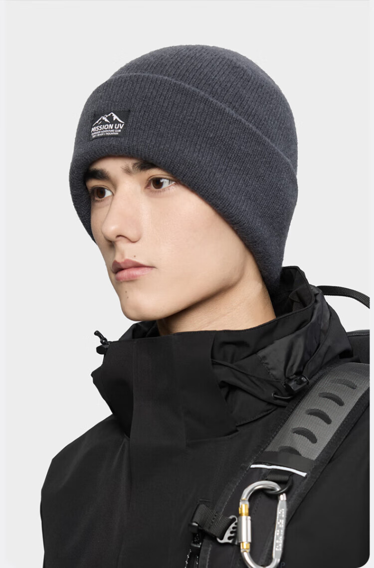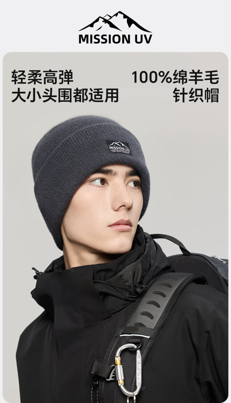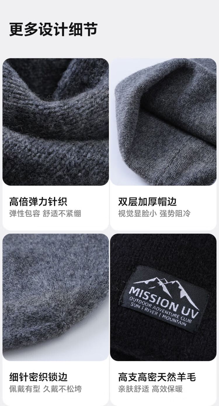 MISSION UV pure wool warm woolen hat autumn and winter thickened knitted hat cold hat winter hat outdoor ear protection cold hat men winter
