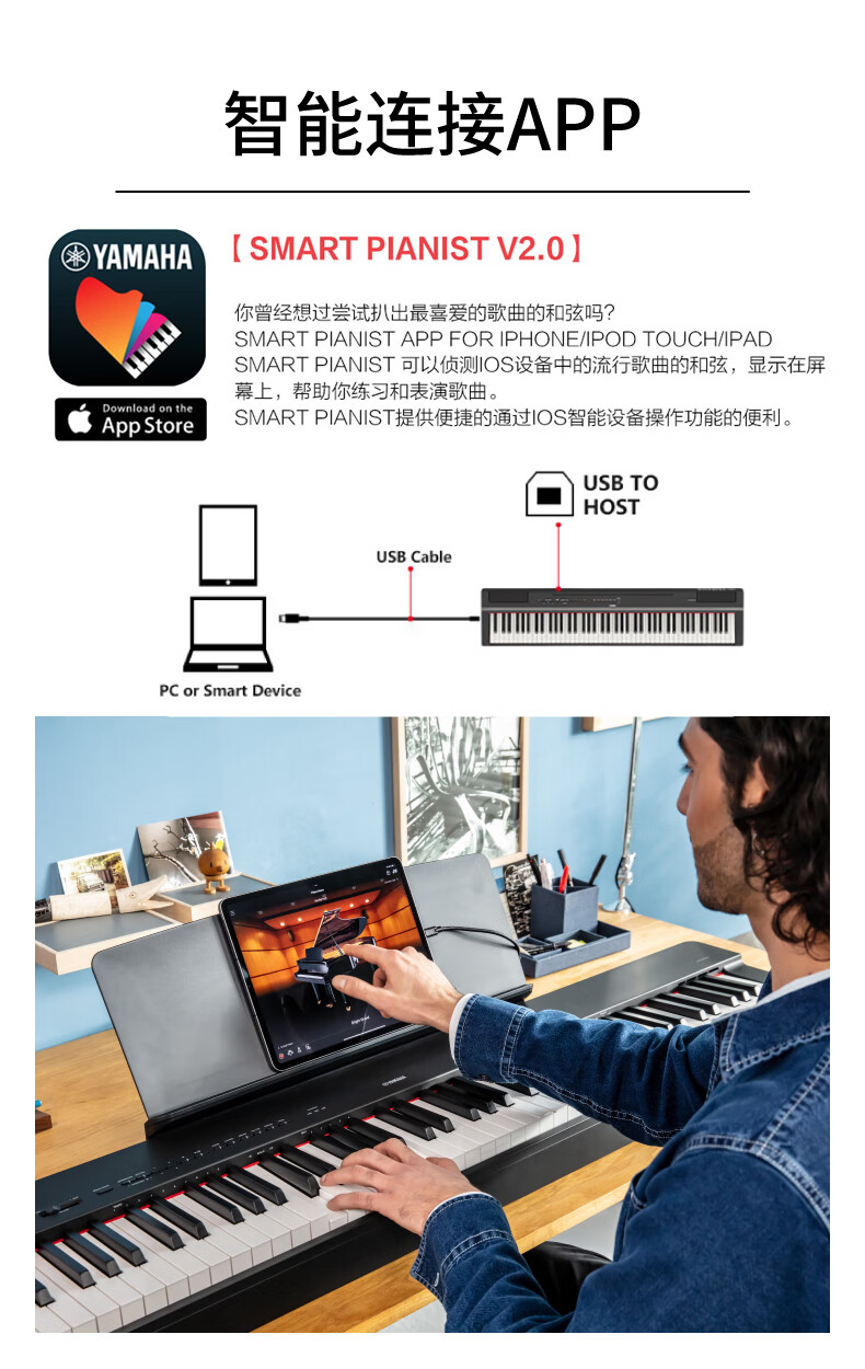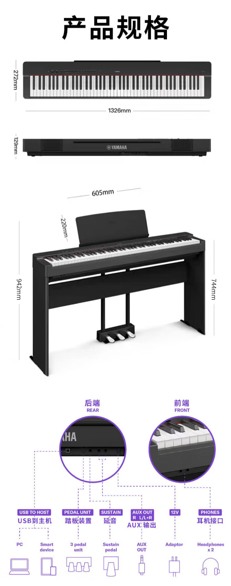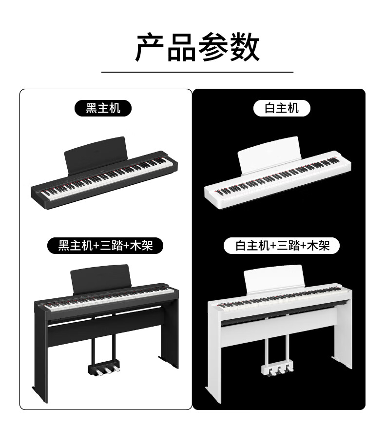 Yamaha (YAMAHA) P225WH heavy hammer 88-key digital electric piano for adults and children, main unit + xylophone stand + three pedals