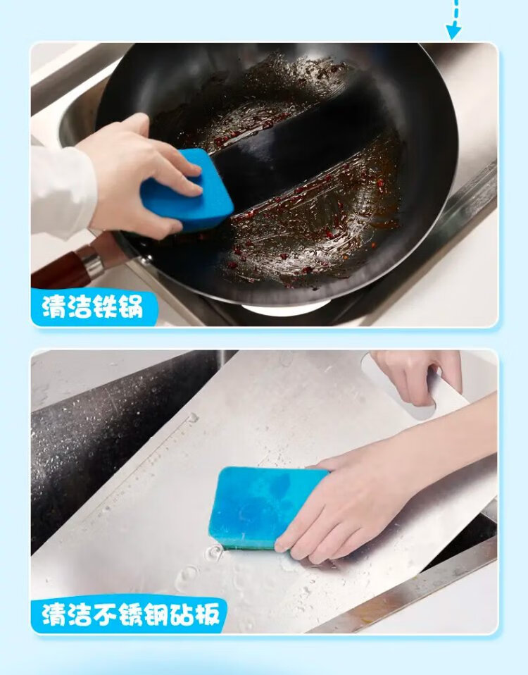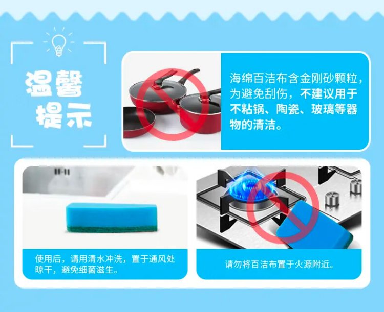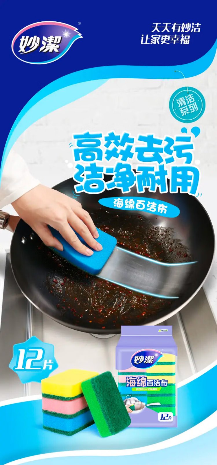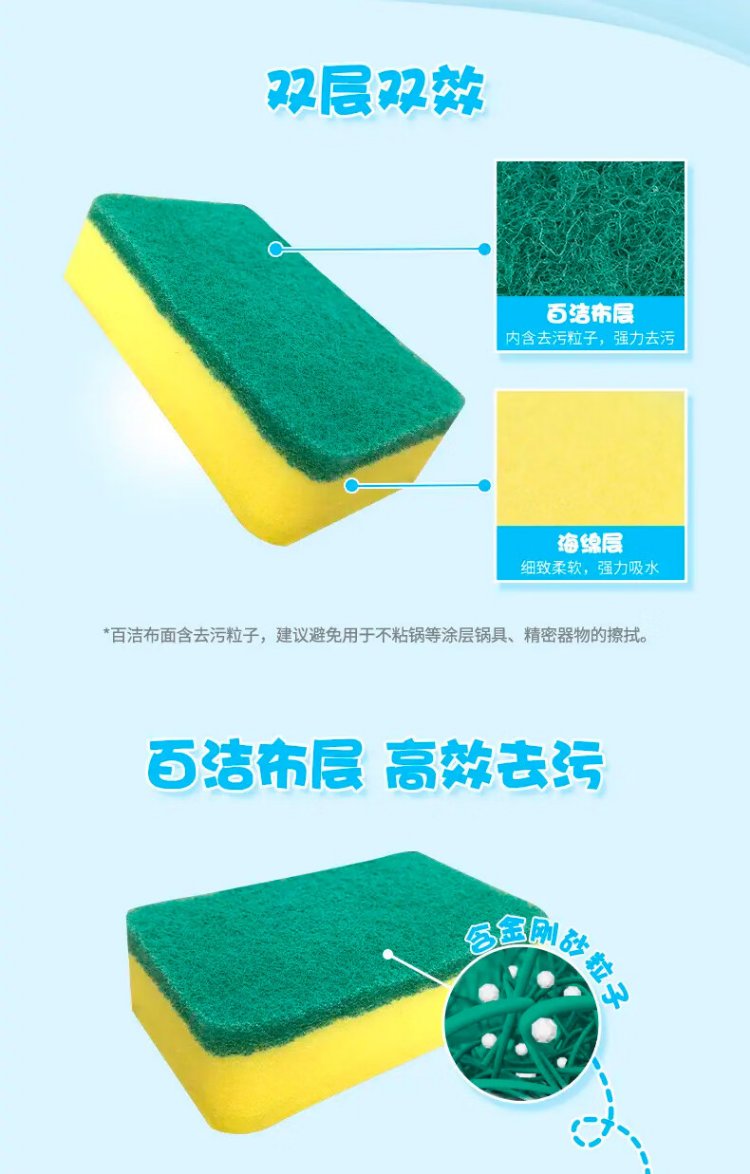 Miaojie sponge scouring pad 11*7cm 12 pieces, four colors for degreasing rags, kitchen dishwashing cotton