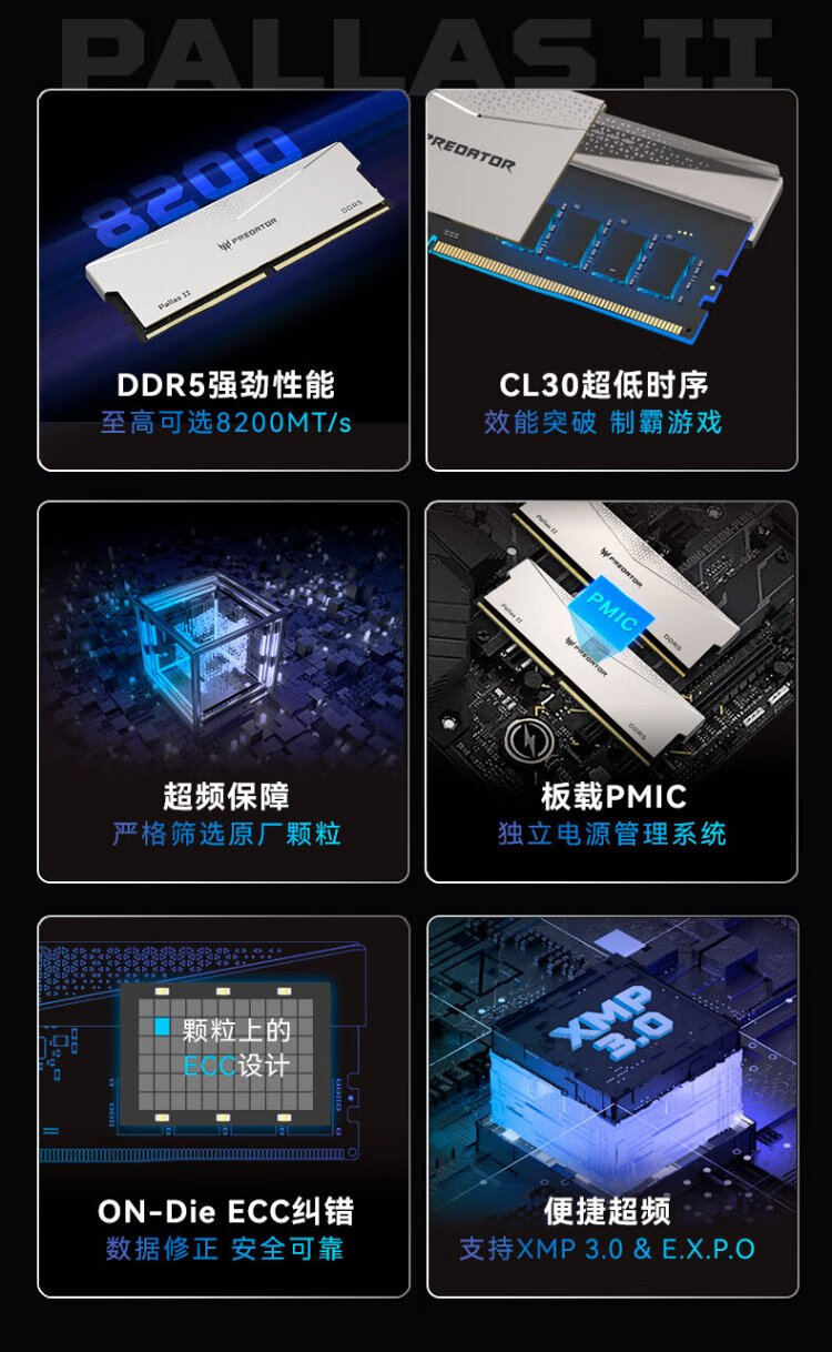 Acer PREDATOR 32G (16G 2) set DDR5 6000 frequency desktop memory stick Pallas II Lingshuang series (C30) Shi Yaohei AI computer storage accessories