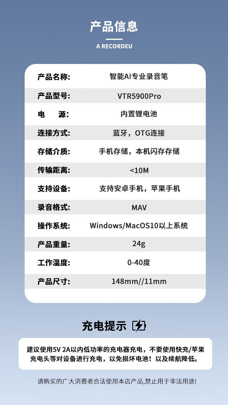 Philips (PHILIPS) Pen Recorder VTR5900Pro Starry Sky Blue 32G Bluetooth Version Professional Text Converter HD Noise Reduction Portable Small Conference Lawyer Portable Evidence Collection One-click Recorder