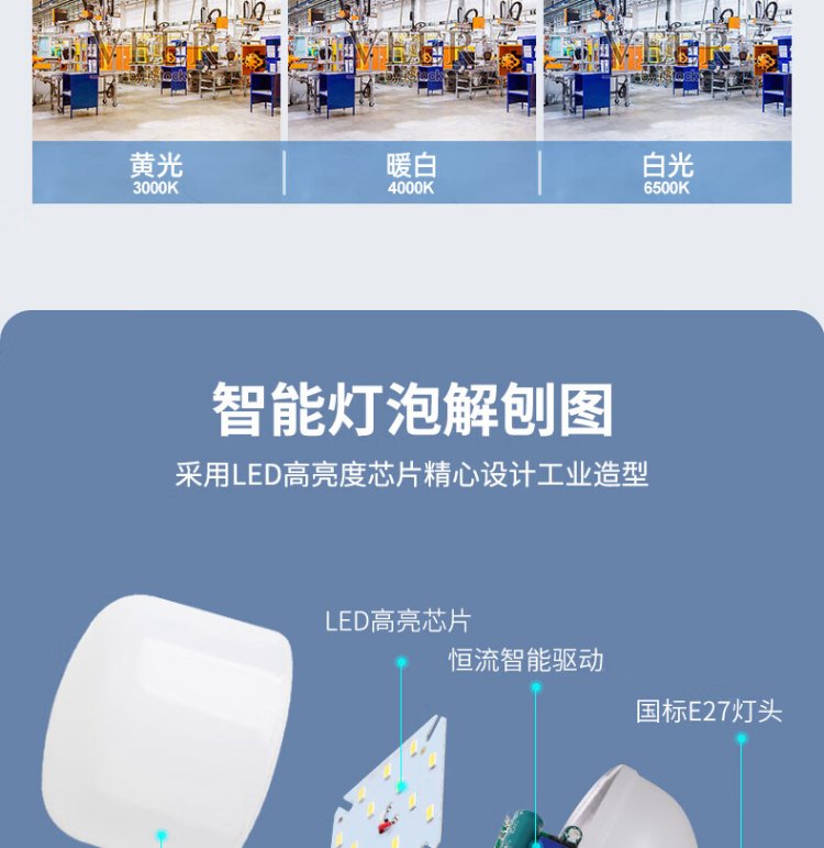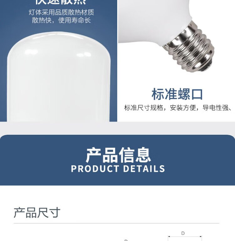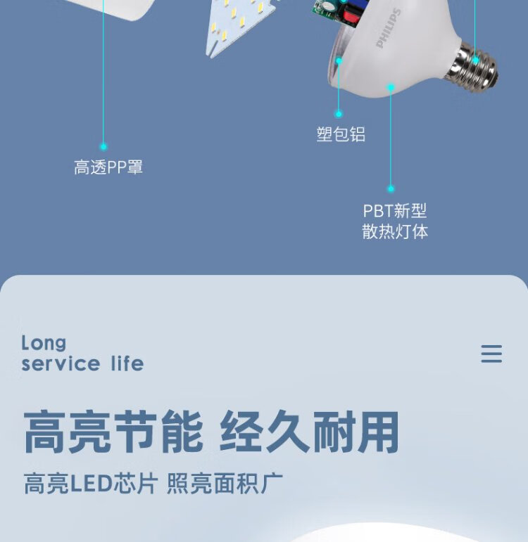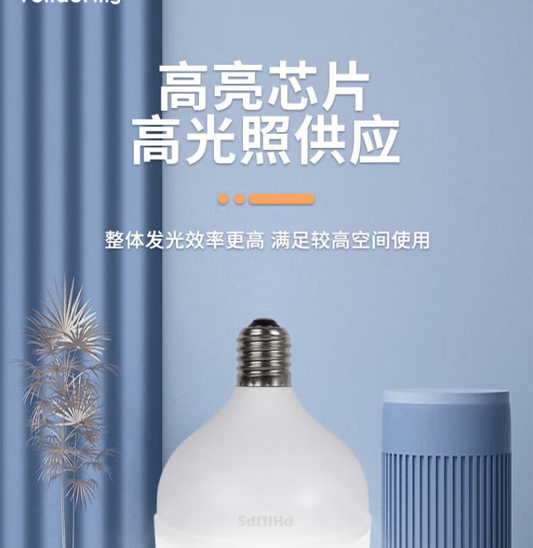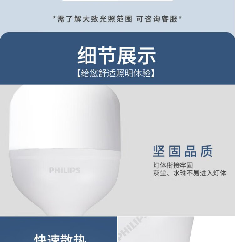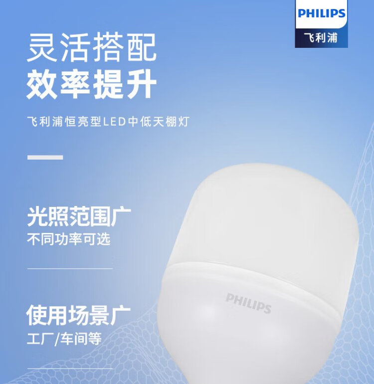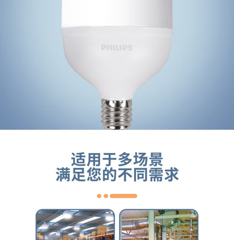 Philips (PHILIPS) constant-brightness LED bulb, medium and low ceiling lamp, high-power energy-saving lighting bulb E27 screw socket 50W white light (6500K)