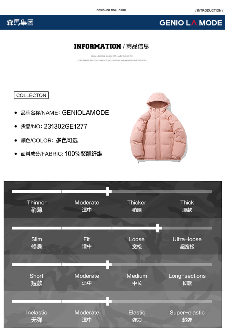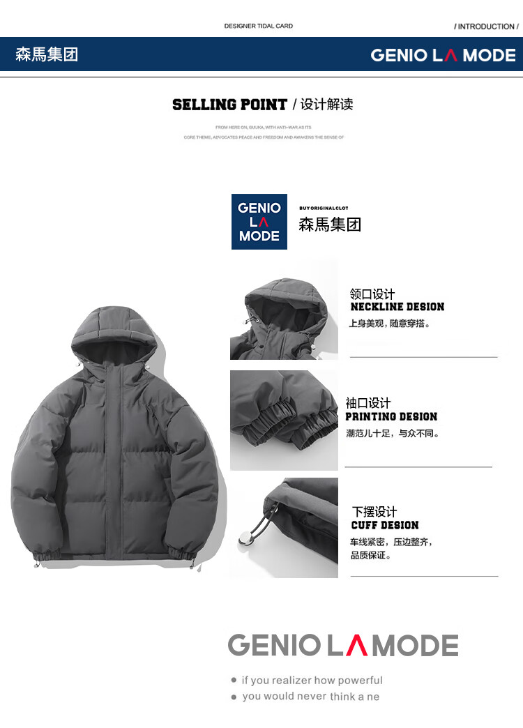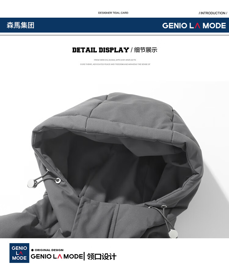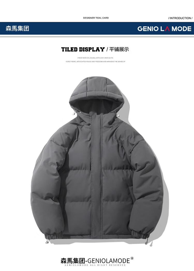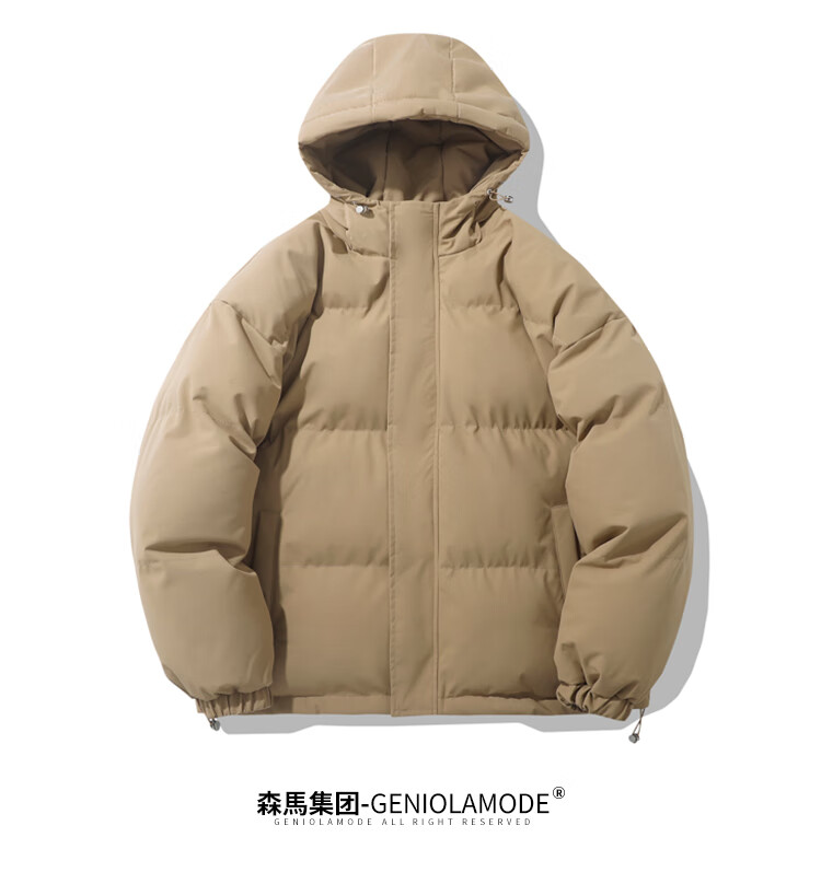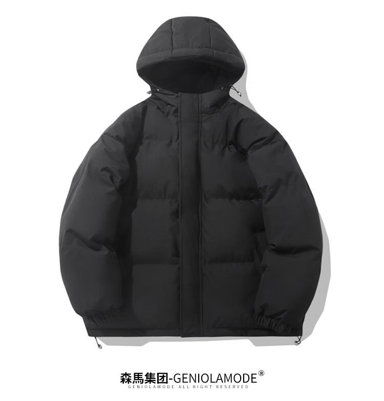 GENIOLAMODE cotton coat men's Korean style hooded casual comfortable bread coat solid color versatile warm jacket