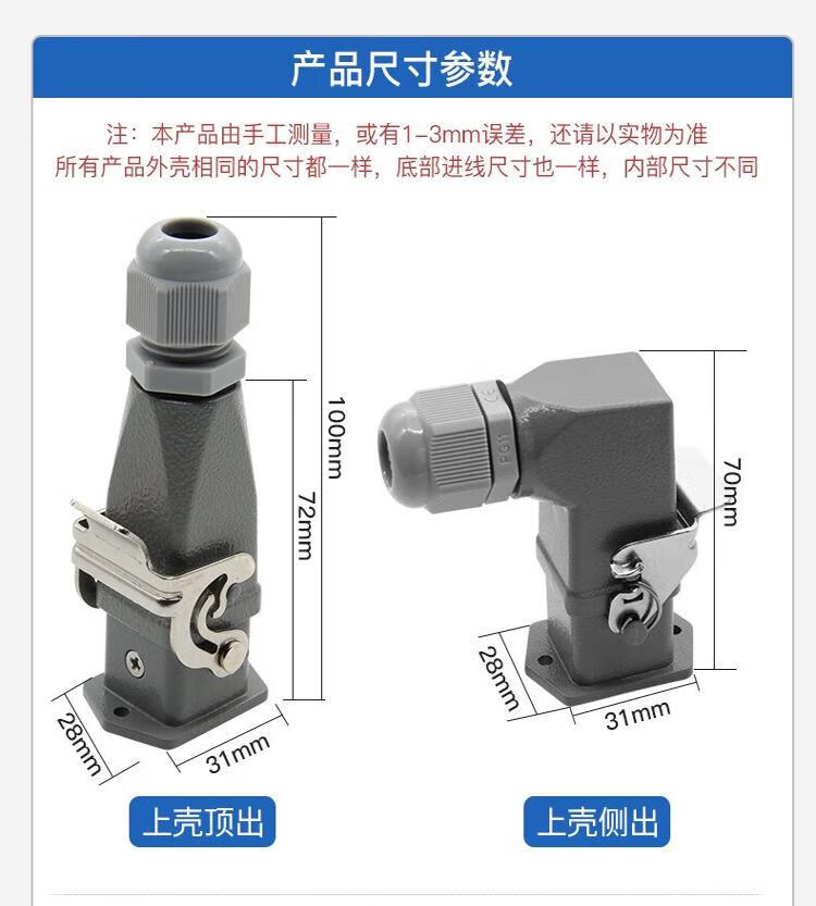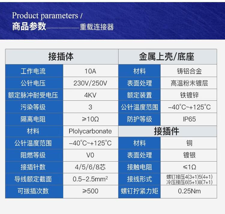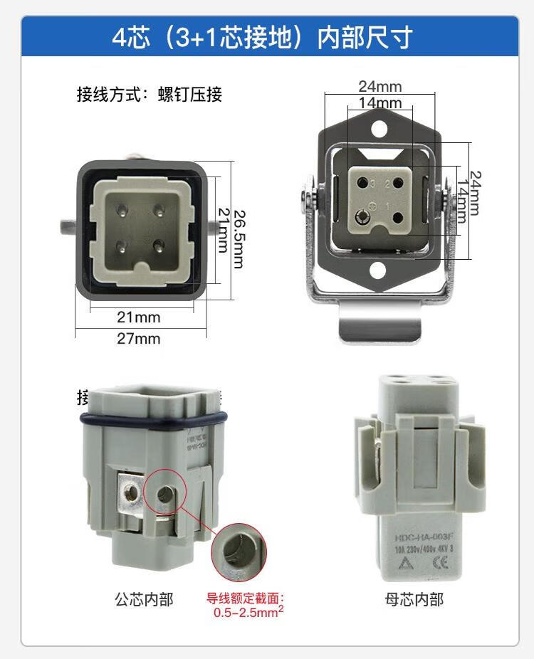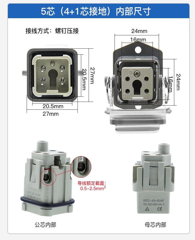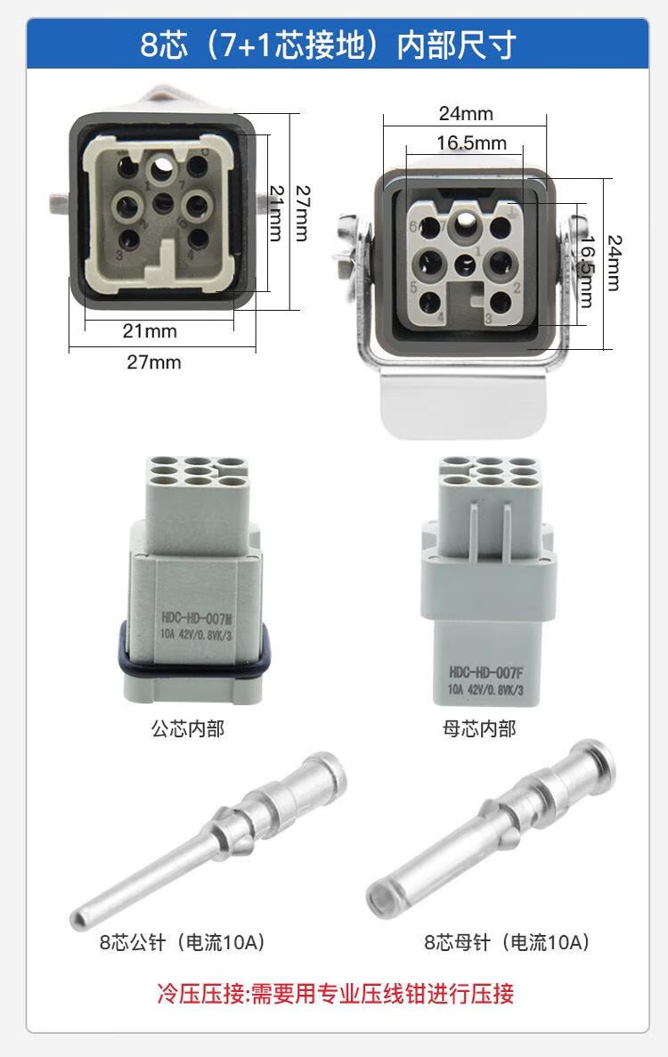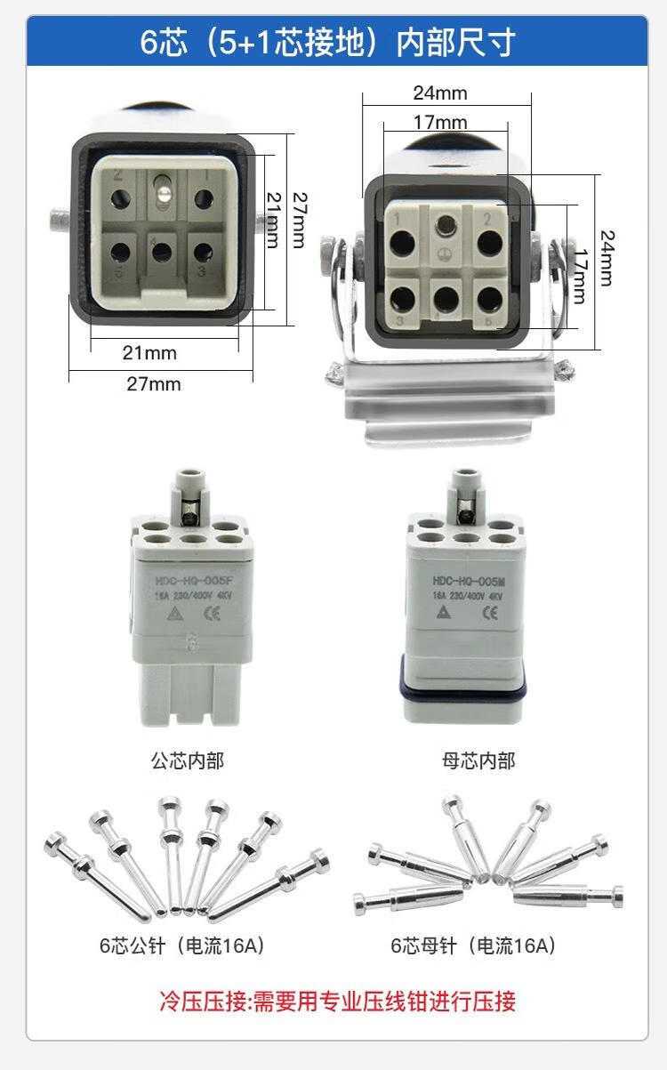 Andatong rectangular aviation plug and socket, male and female hot channel flow heavy-duty connector, 10A cold-pressed pin remover