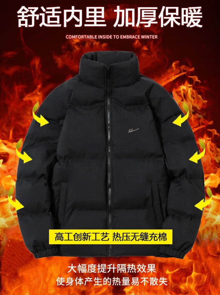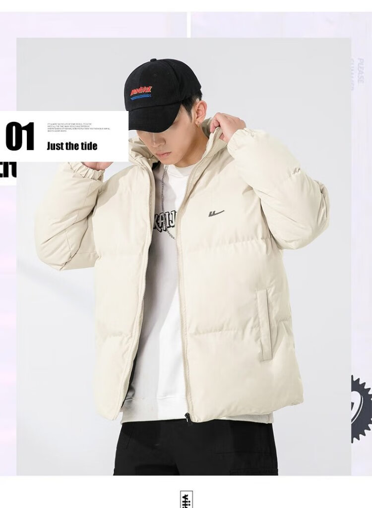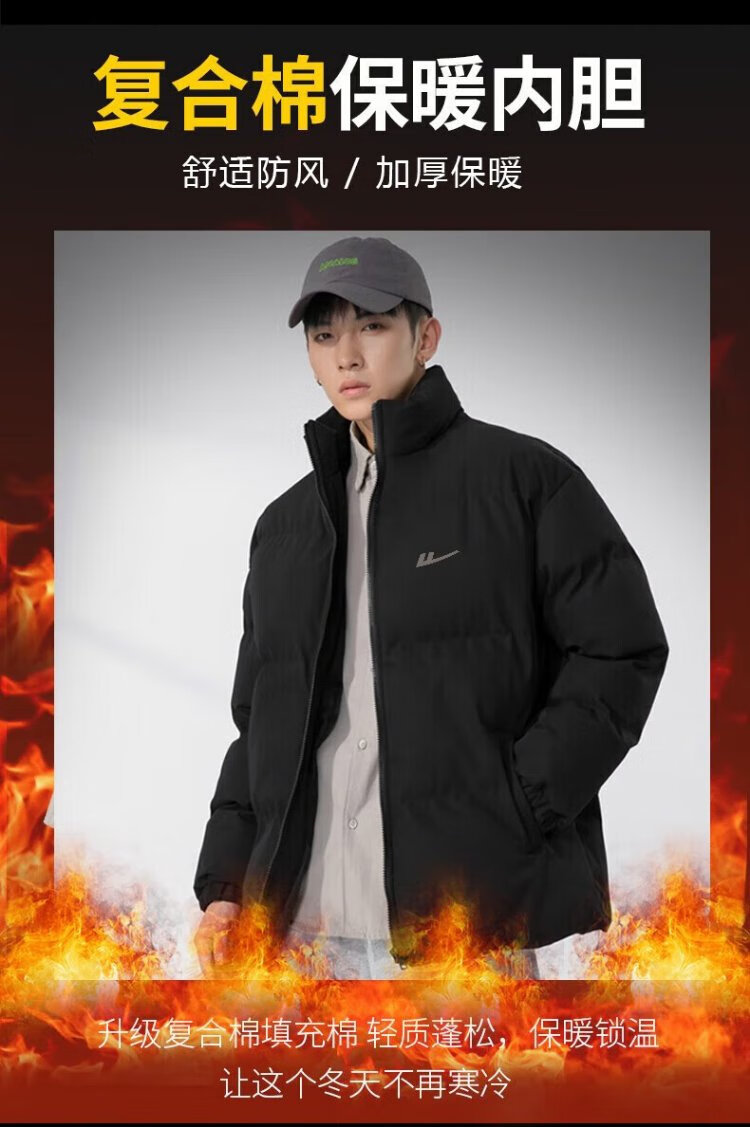 Pull-back cotton jacket for men, men's winter stand-up collar windproof cotton coat, thickened and warm, trendy sports outdoor leisure cotton jacket