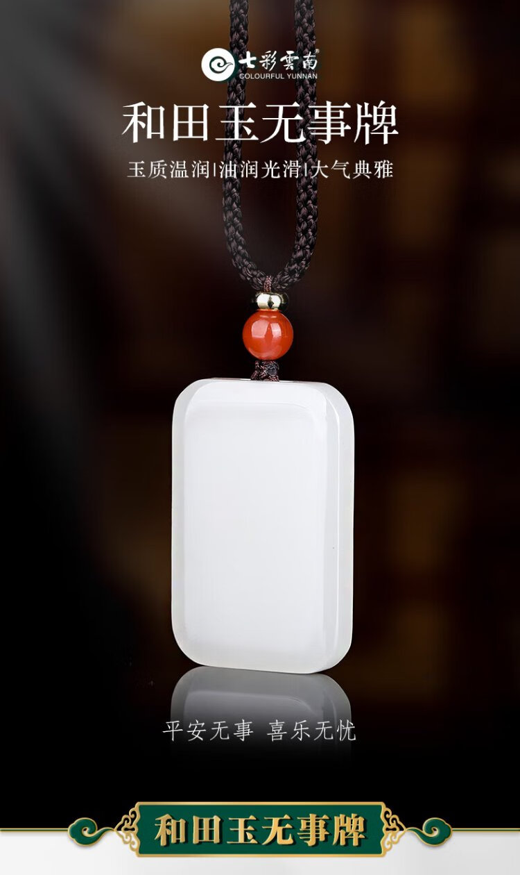 Colorful Yunnan Hetian Jade No Matter Brand Pendant Blue and White Jade Ping An Wu Shi Brand Jade Brand Jade Pendant Necklace Valentine's Day Gift