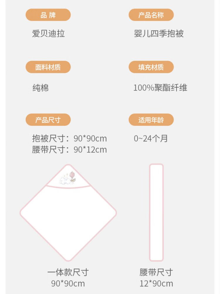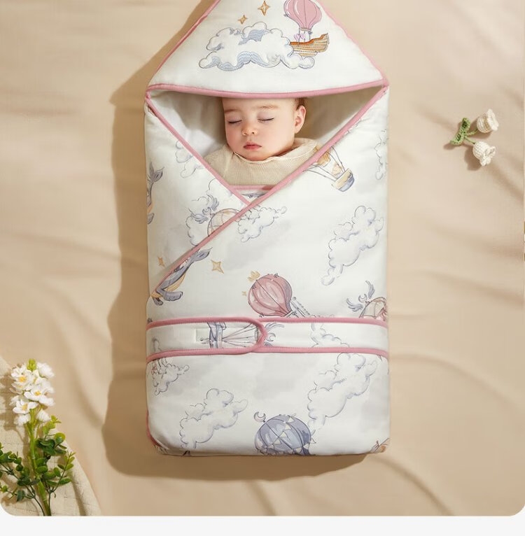 Aibedila baby blanket newborn autumn and winter thickened cotton sleeping bag swaddle bag anti-jump bag single 90*90cm powder 260g