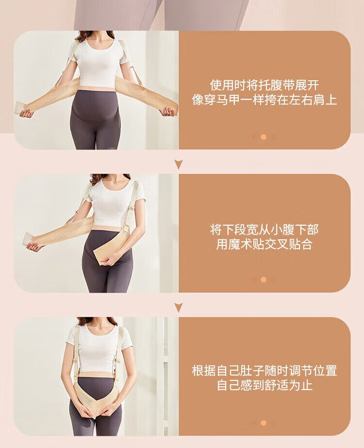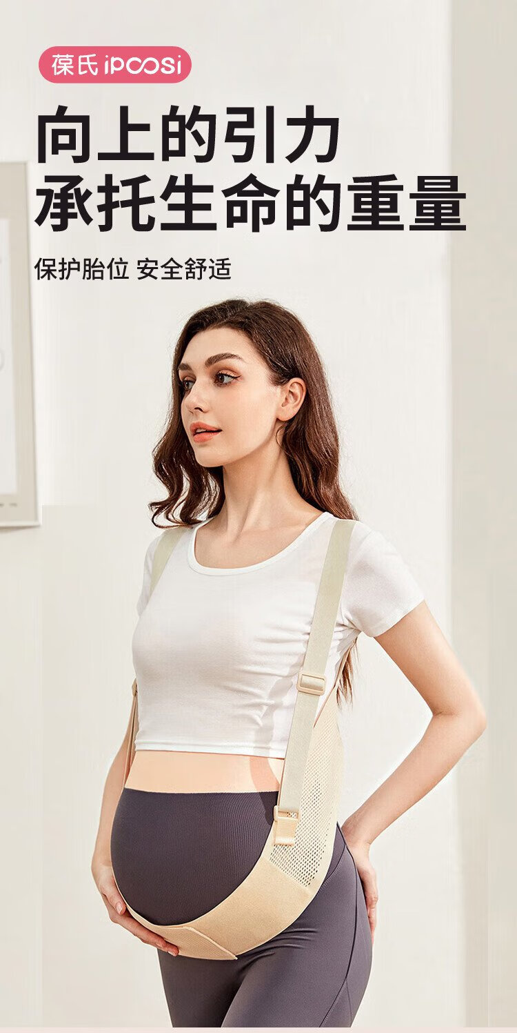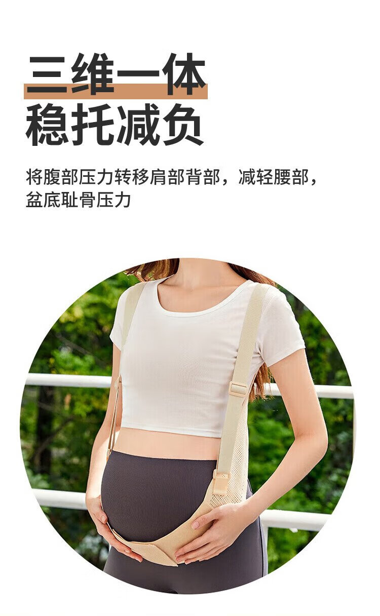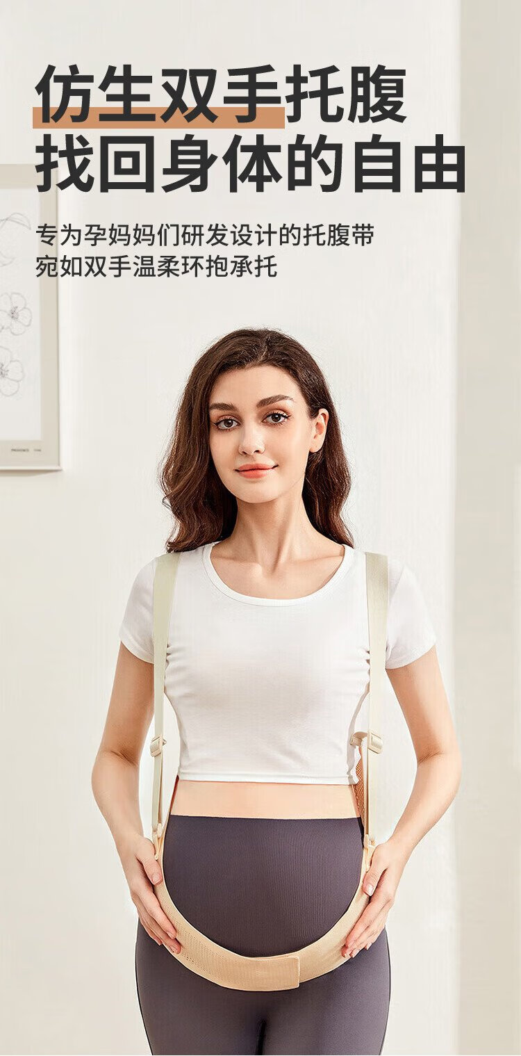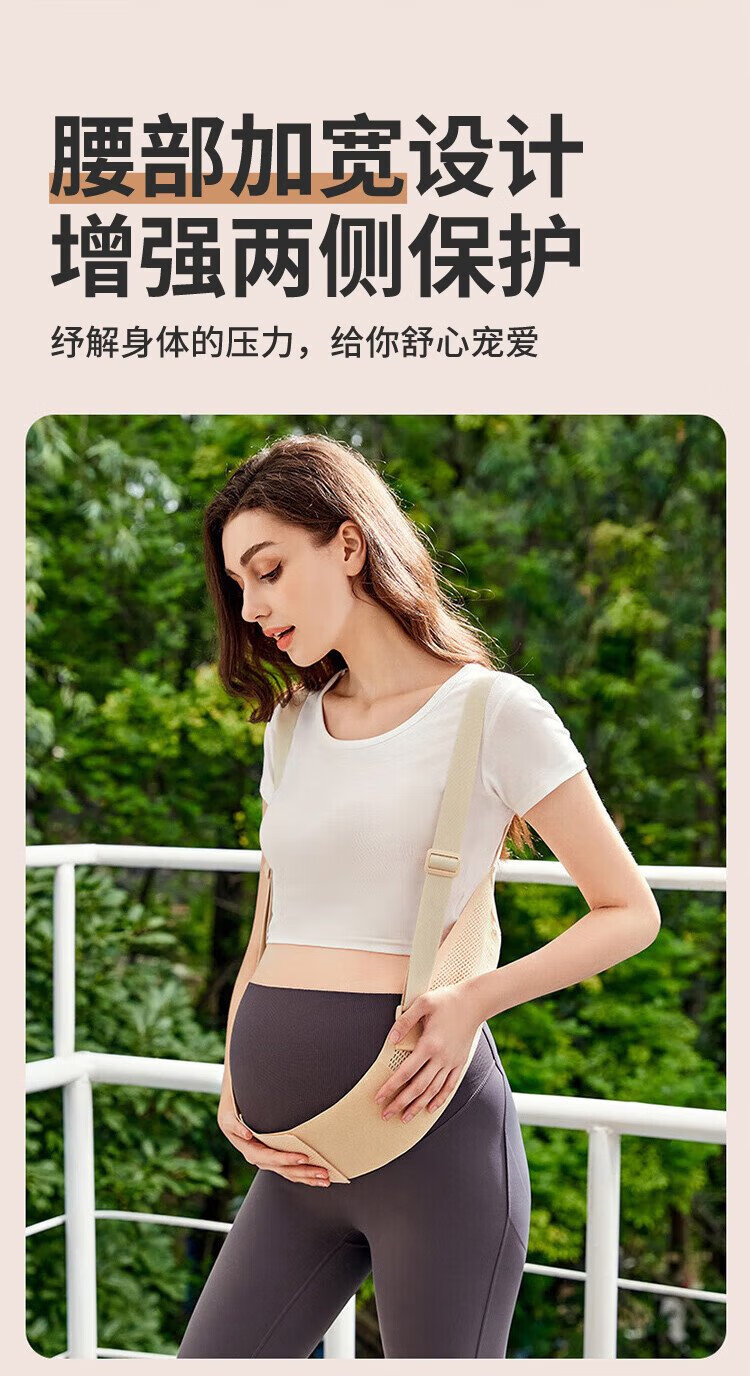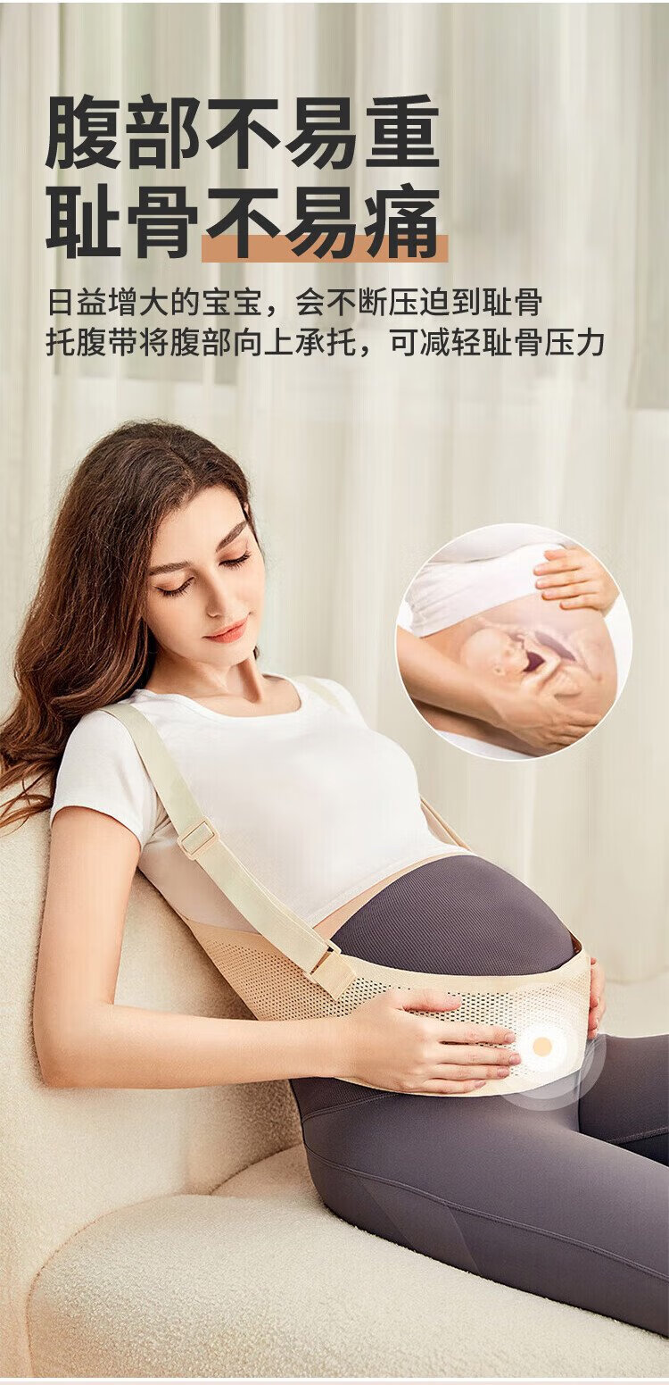 Bao's abdominal support belt for pregnant women, late pregnancy and prenatal abdominal belt, breathable and highly elastic shoulder-type fetal belt, beige M code
