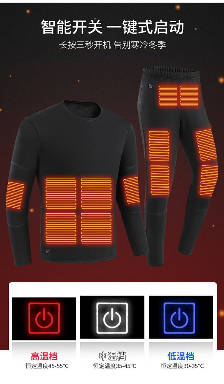 DWRTCVLCOBON Mike Champion Zone 12 Smart Electric Heating Thermal Underwear Men's Black Pants 3XL