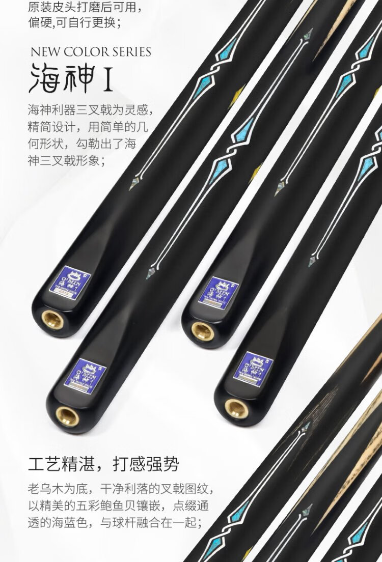 Mysterious Poseidon 1 billiard cue black 8 snooker cue set black eight small head 16 color black eight cue snooker cue