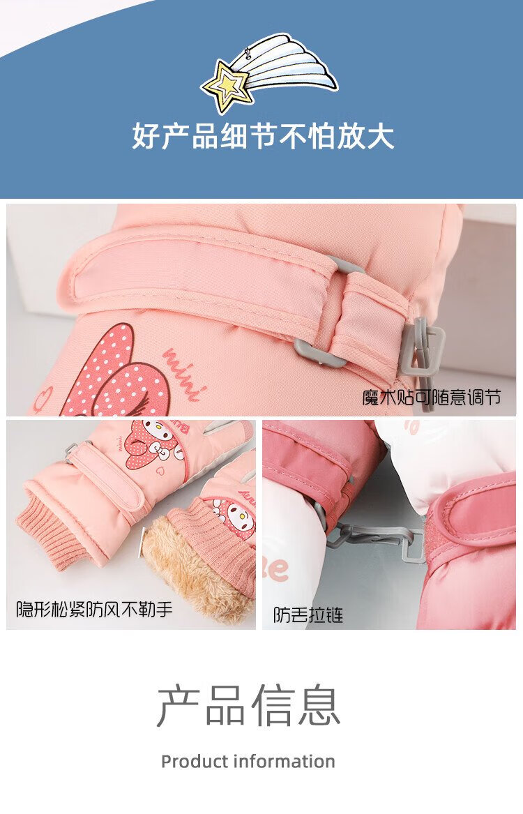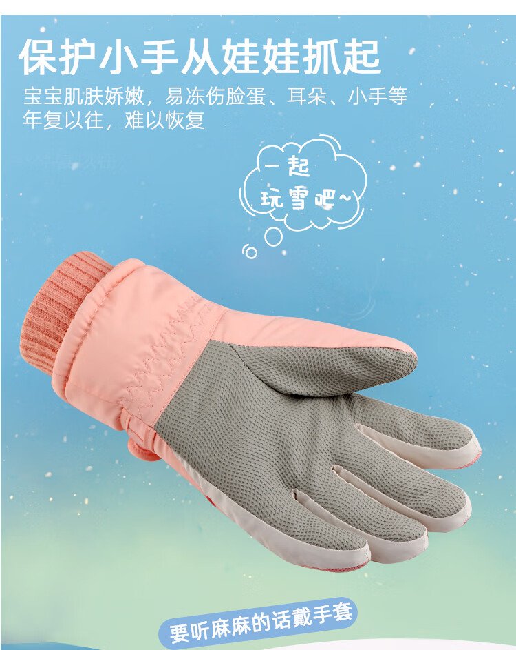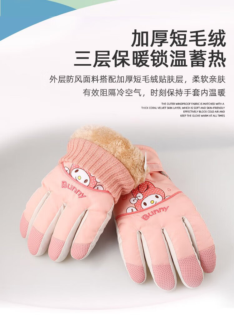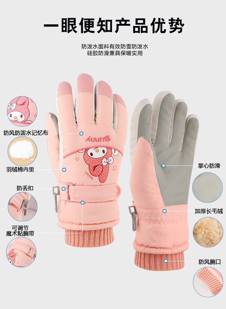 Torchman children's gloves are cold-proof, 8 to 12 years old, plus velvet and thickening, cartoon girls, middle and older children's ski warm gloves C3225