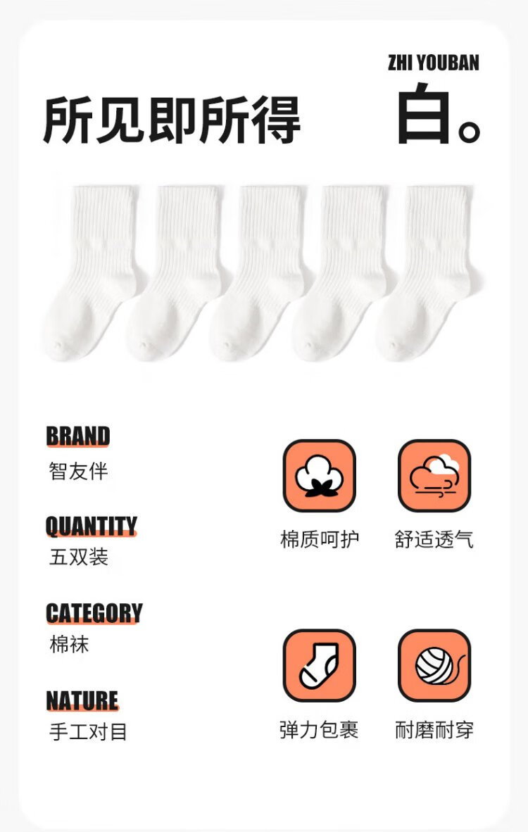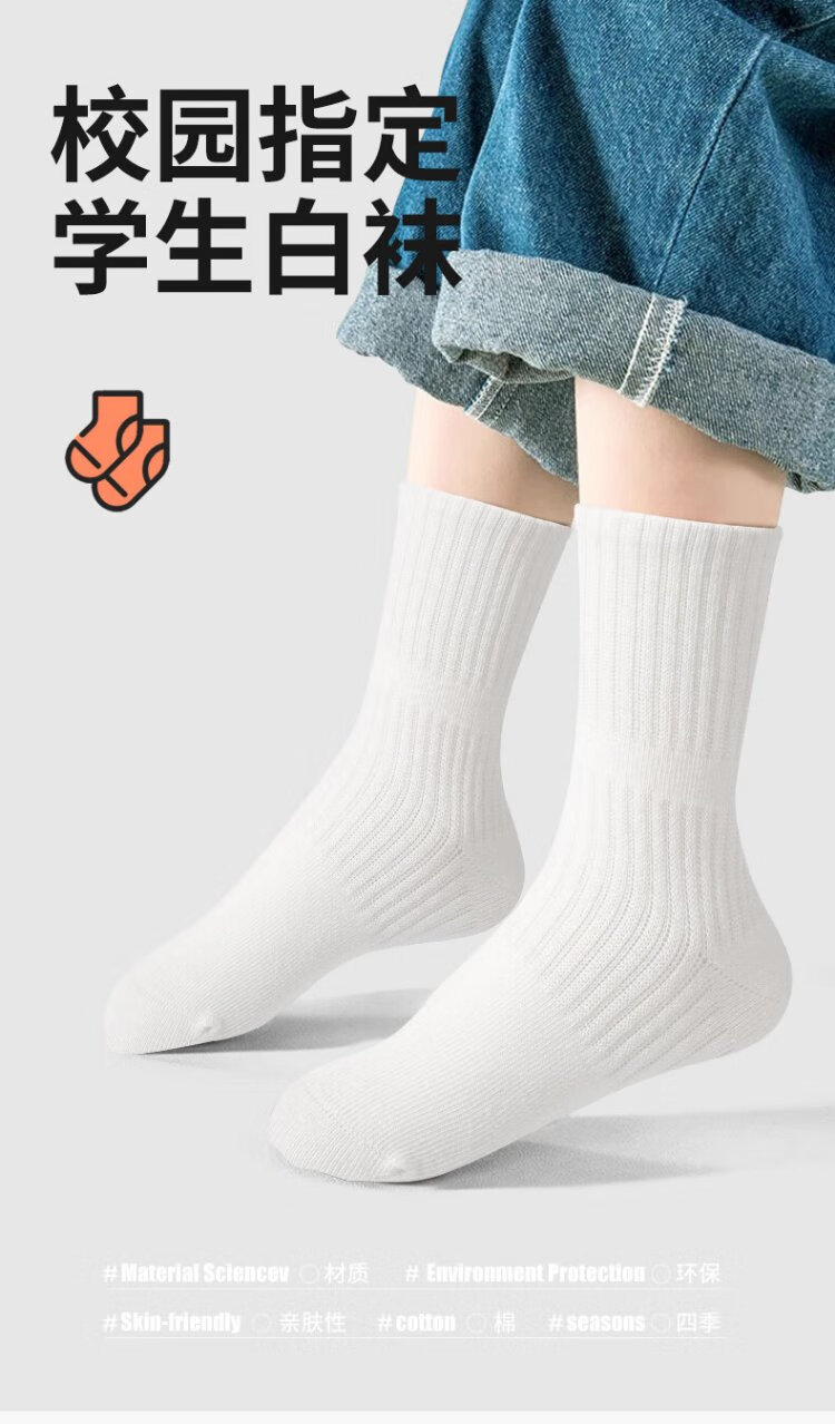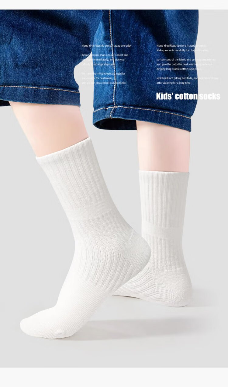Smart Friends Children's White Socks Student Campus White Cotton Socks Boys Sports Socks Spring and Autumn Cotton Socks Girls Thin School Uniform Socks