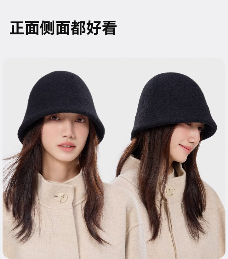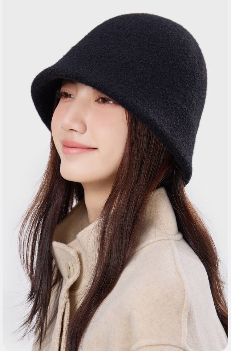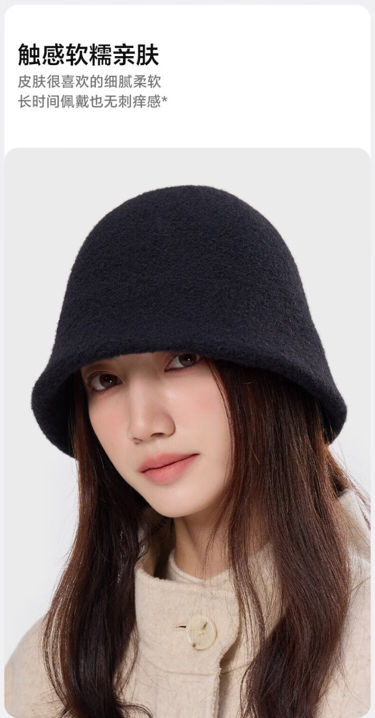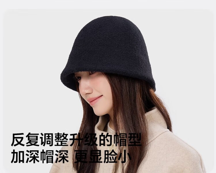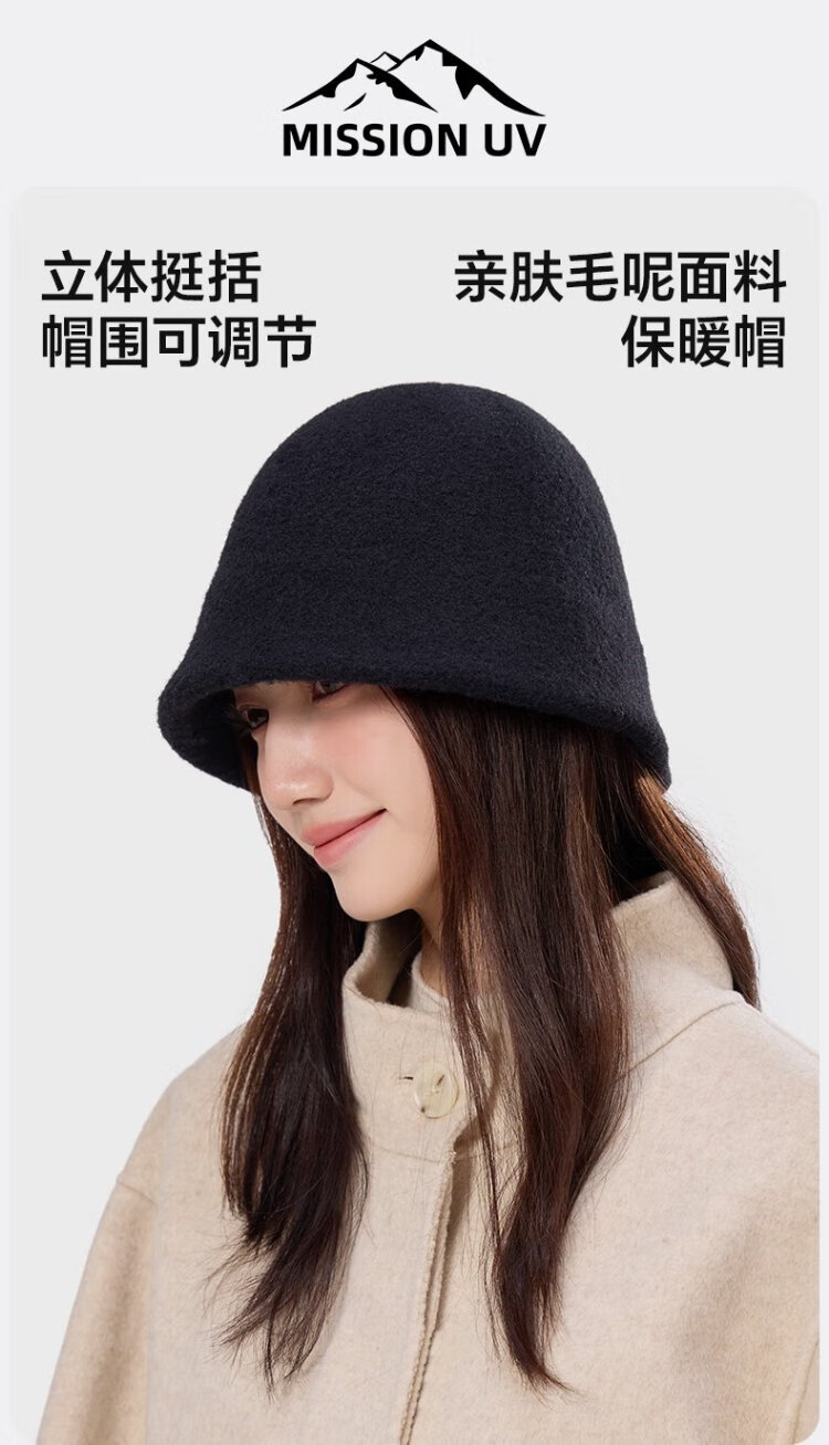 MISSION UV woolen warm fisherman hat for women in autumn and winter, versatile face-showing small winter hat, windproof and cold-proof hat for women in winter