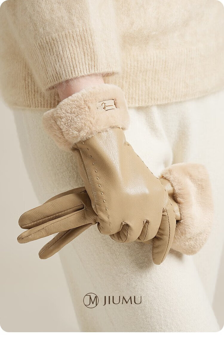 JIUMU warm leather gloves for women in winter plus velvet windproof outdoor driving and riding electric bicycle cold-proof touch screen gloves