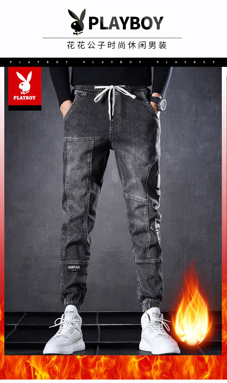 Джинсы Playboy (PLAYBOY) мужские леггинсы брюки мужские осенне-зимние повседневные комбинезоны модные брюки небольшого кроя мужские тонкие утолщенные мужские брюки