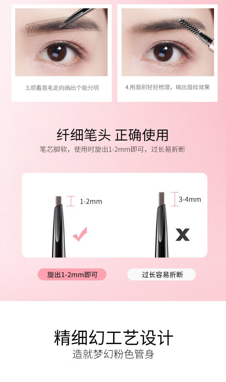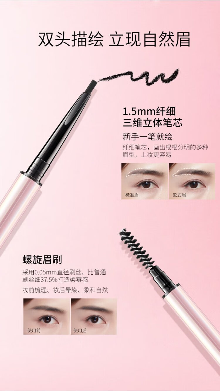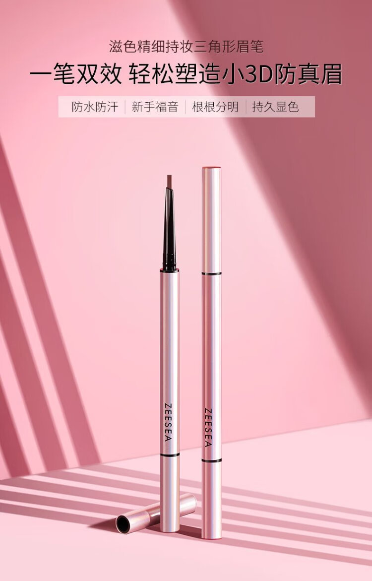 ZEESEA Ultra-Fine Eyebrow Pencil Waterproof and Sweatproof Double-ended Triangular Eyebrow Pen Novice Dark Brown Birthday Gift
