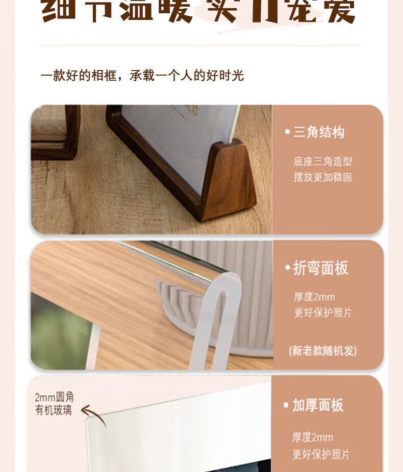 Aimo painted 6-inch solid wood photo frame table walnut U-shaped transparent acrylic photo postcard desktop display stand vertical style