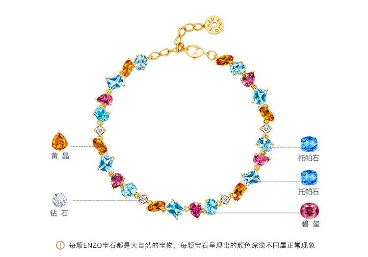 Chow Tai Fook ENZO Sunset Orange Sea 18K gold colorful gemstone diamond bracelet for women 17.5cm EZV8790