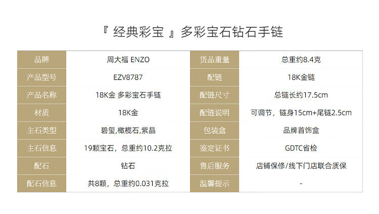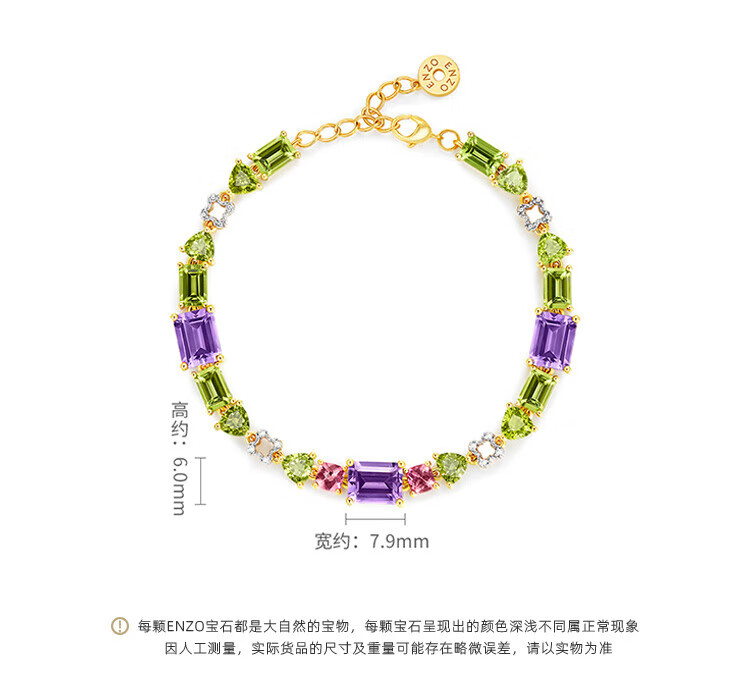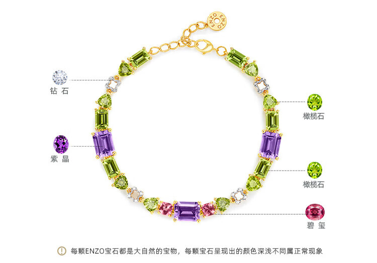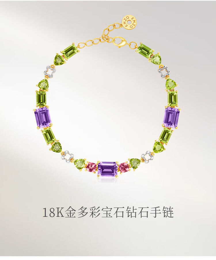 Chow Tai Fook ENZO 18K gold colorful gemstone diamond bracelet for women 17.5cm EZV8787
