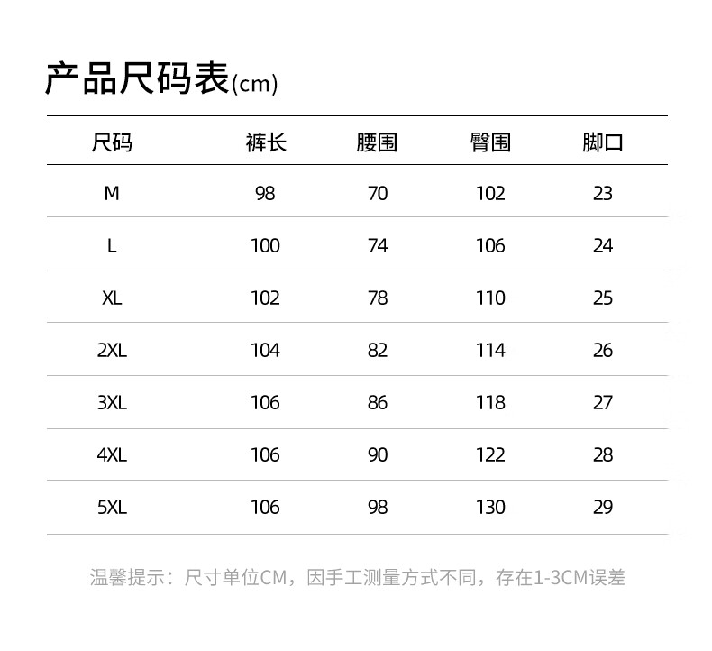 Outseam (cm) 99 cm 101.5 cm 104 cm 106.5 cm 109 cm