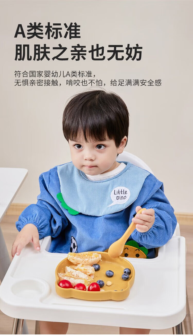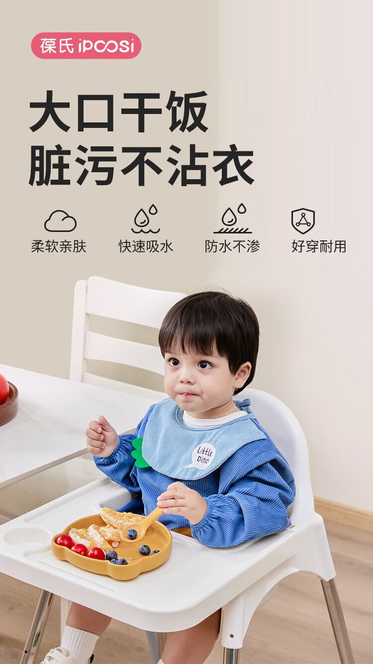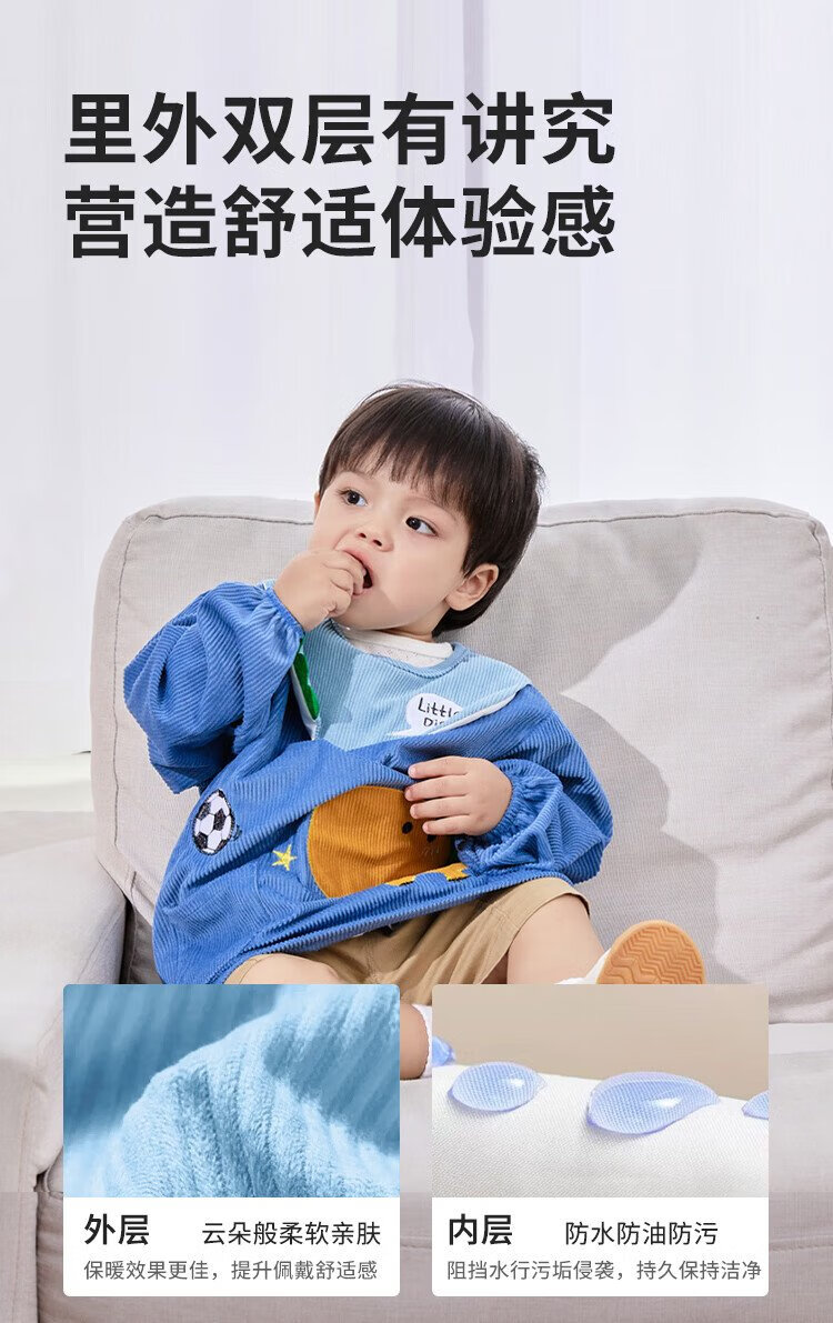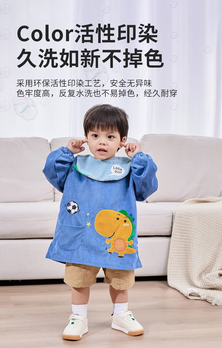 Bowie's bib children's apron corduroy smock eating bib reverse dressing rice pocket baby bib children's splash-proof clothing blue