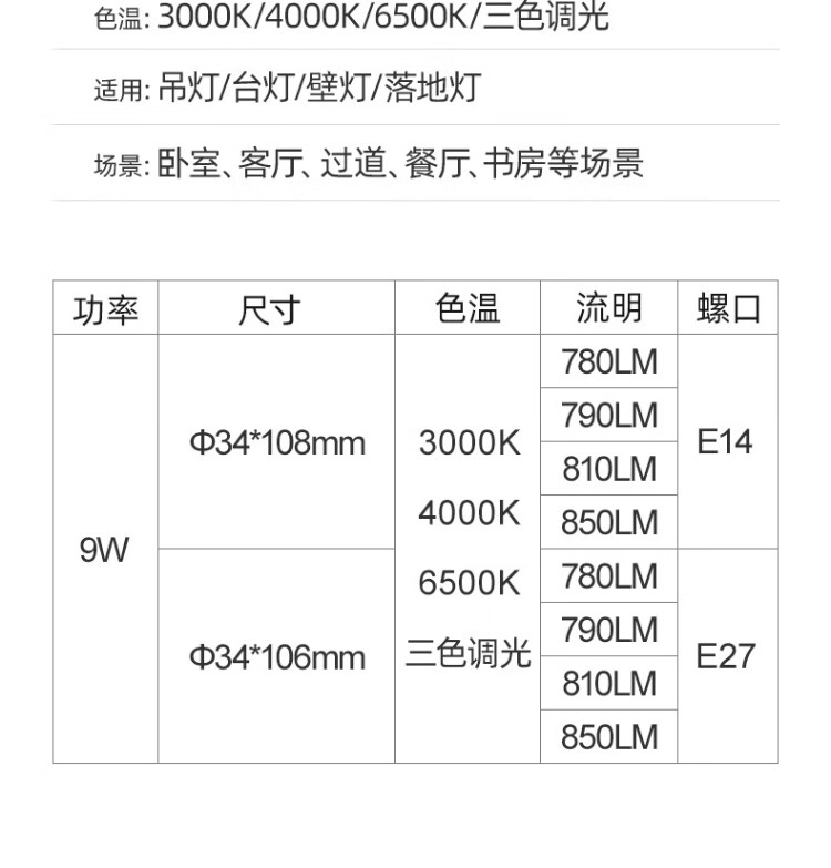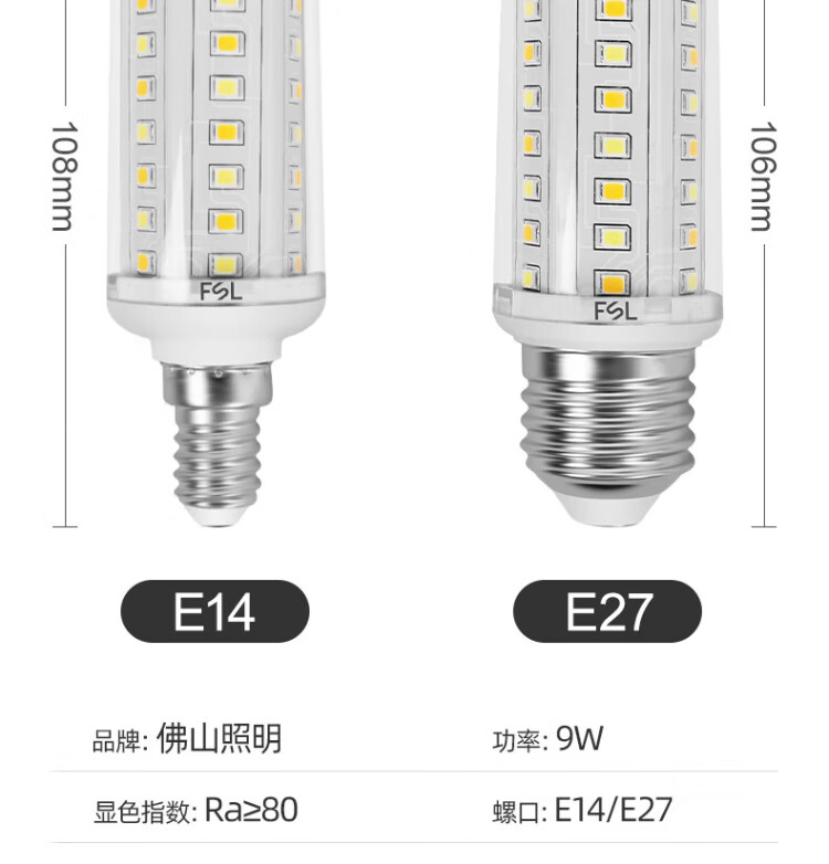 FSL Foshan Lighting High Color Rendering LED Bulb 9W Corn Bulb E27 Screw Candle Bubble Crystal Energy-Saving Bulb Yellow Light 3000K