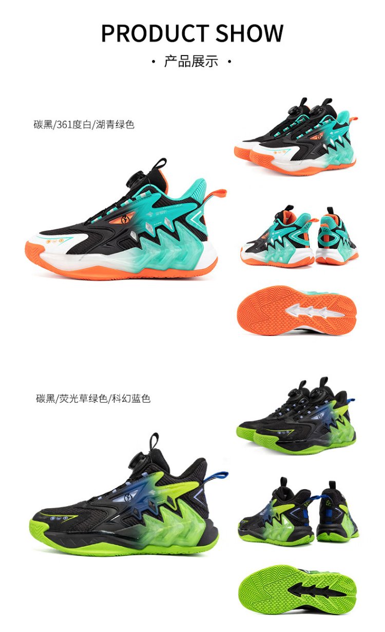 361 Shopping mall same style children's shoes winter medium and large children's boys' twist-button children's basketball shoes green 37