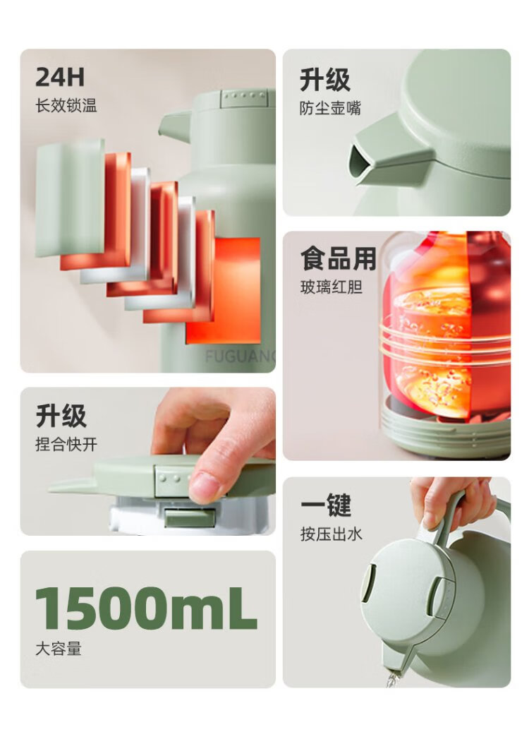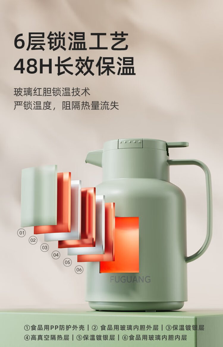 Fuguang thermos kettle household thermos large capacity kettle thermos bottle thermos boiling water bottle thermos glass liner kettle