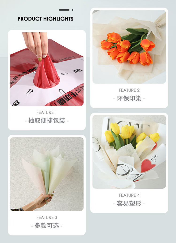 Jiuqiangu wrapping paper bouquet packaging lining paper diy birthday gift flower materials accessories milk cotton white 38 sheets 3612