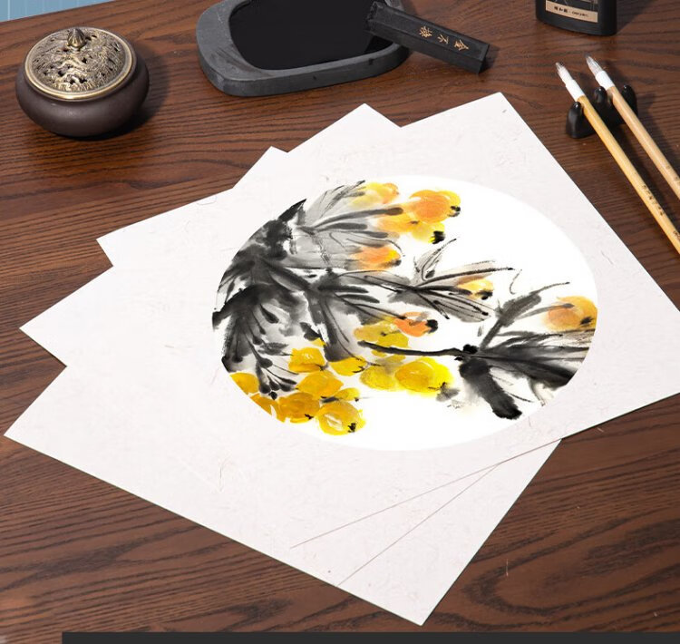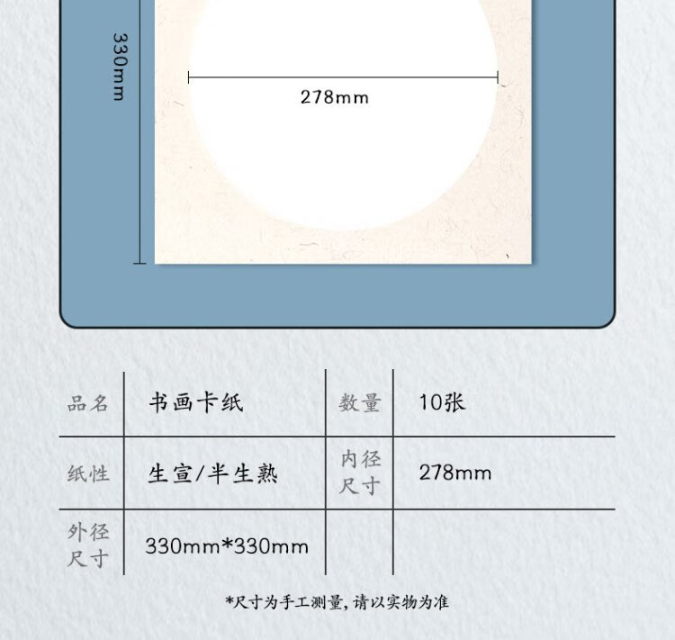 Deli (deli) rice paper cardboard, four treasures of the study, Chinese painting fan, meticulous calligraphy, soft card, round lens paper, half-cooked inner circle, outer antique 33*33cm, 10 sheets, gift