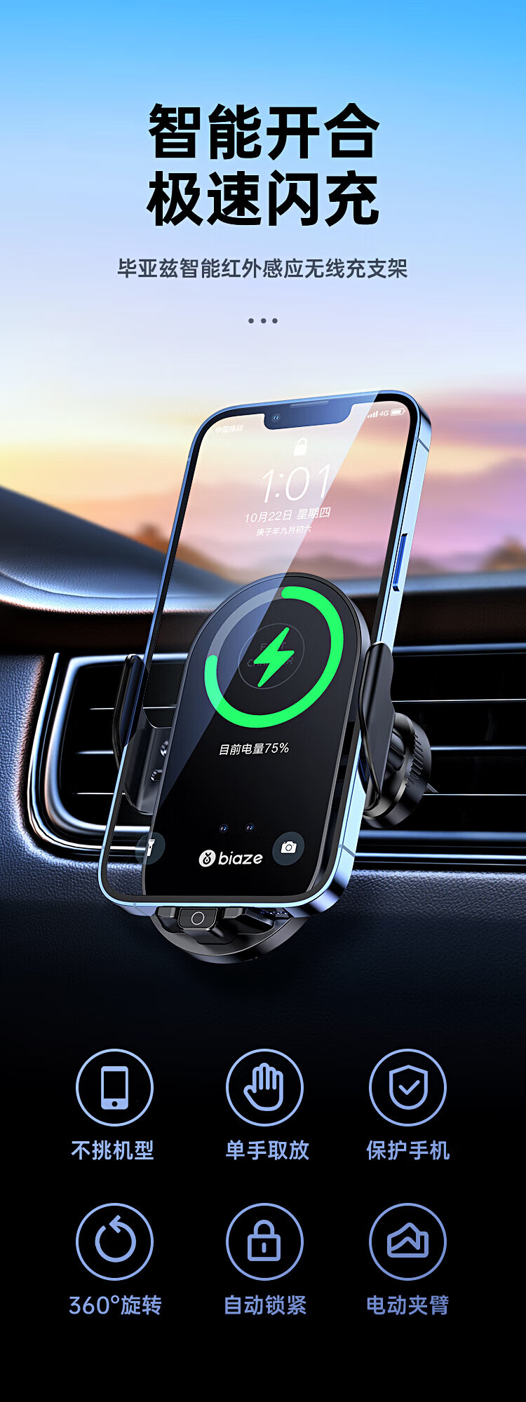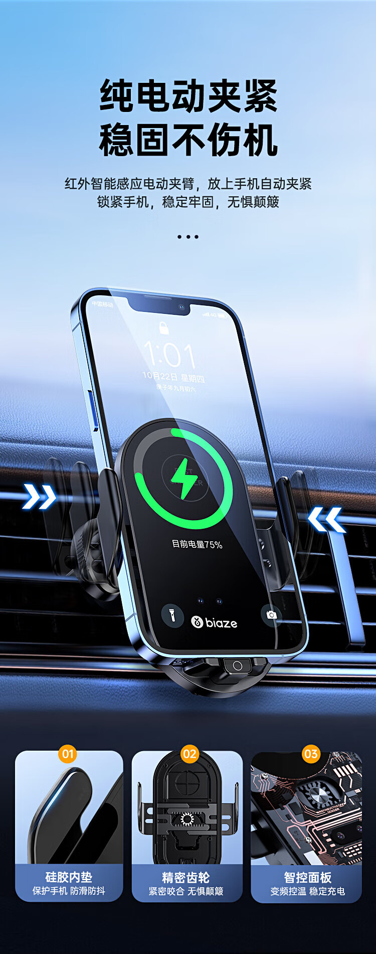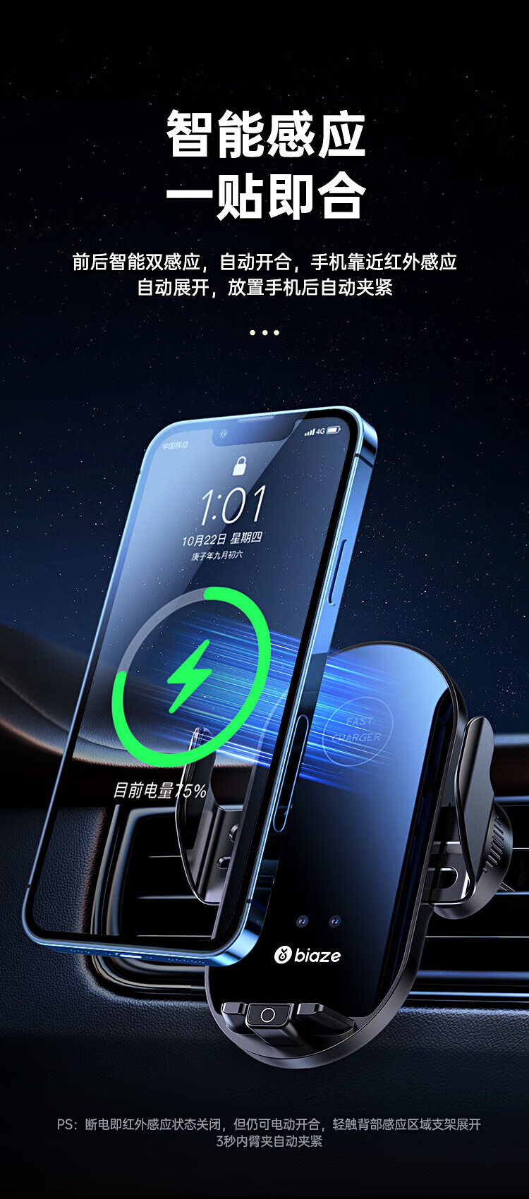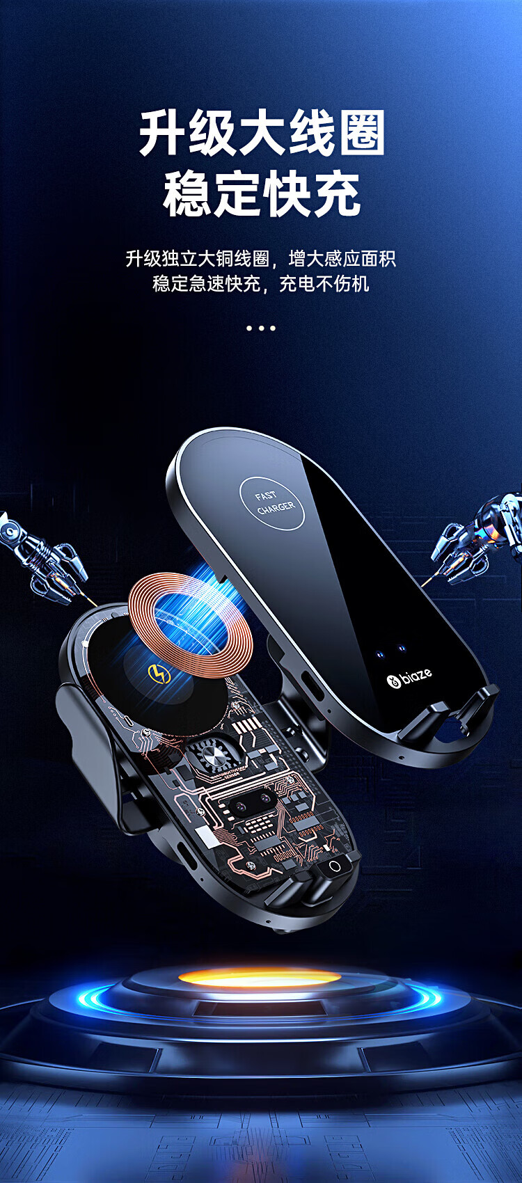 Biaz Car Mobile Phone Holder Wireless Charger Car Navigation Holder Fully Automatic 15W Fast Charging Apple Android Universal