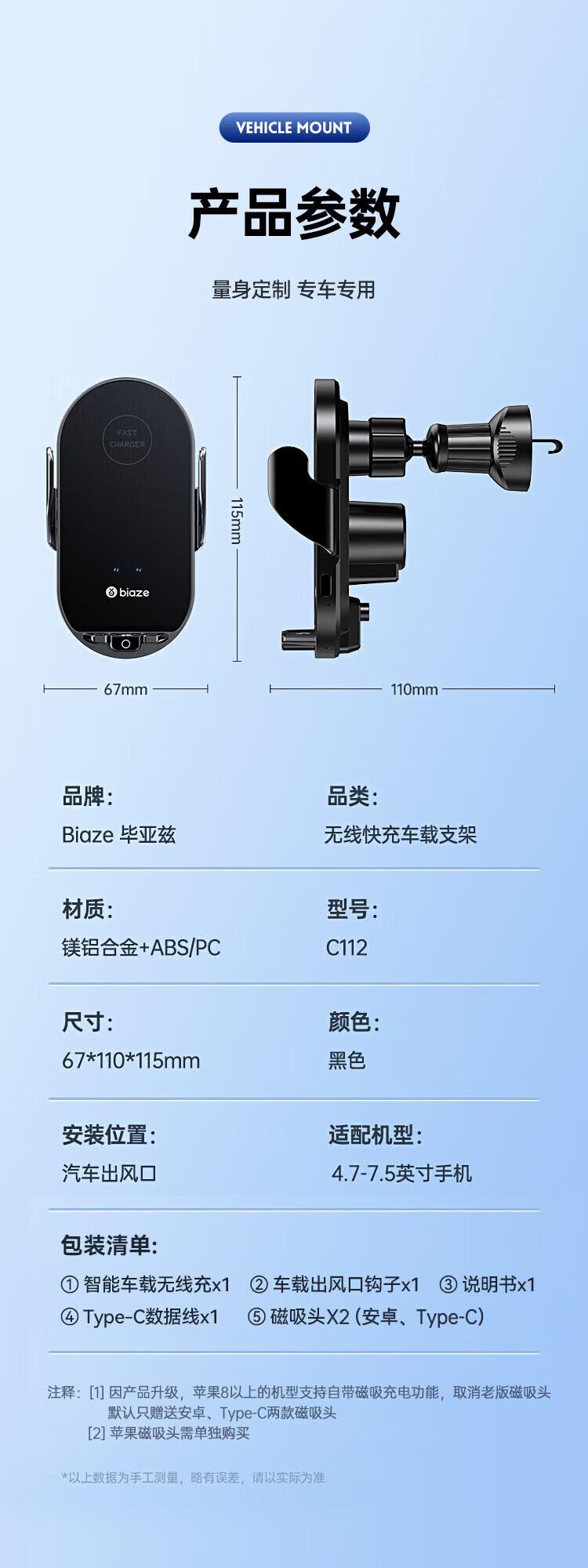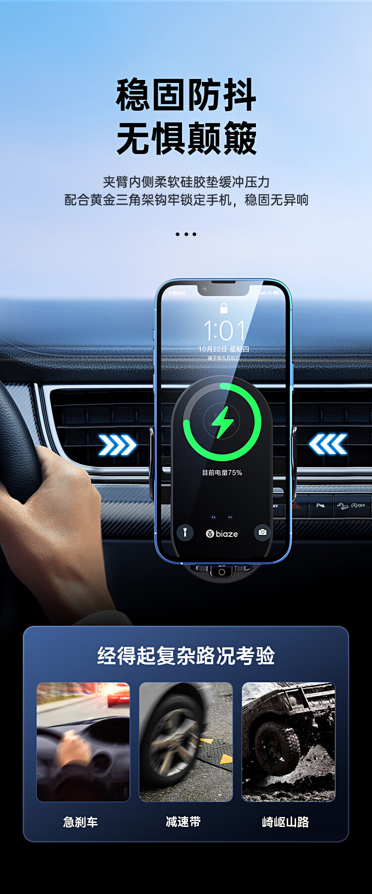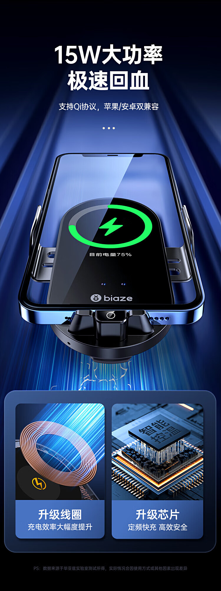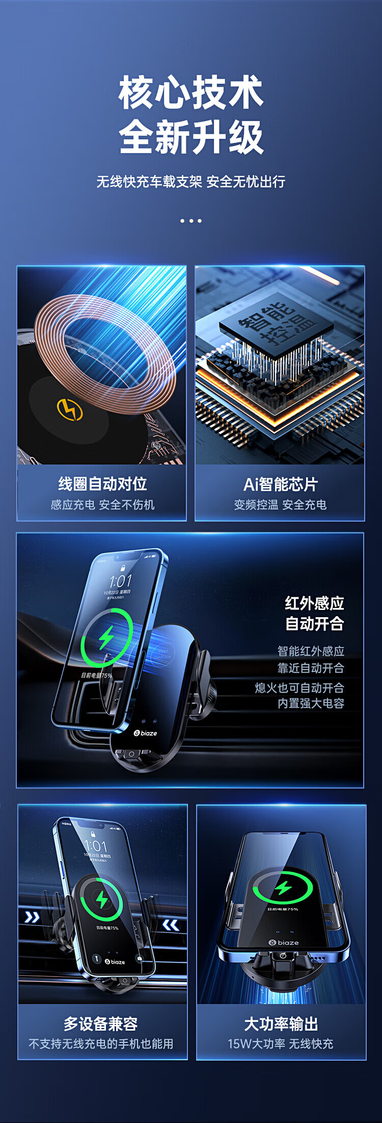 Biaz Car Mobile Phone Holder Wireless Charger Car Navigation Holder Fully Automatic 15W Fast Charging Apple Android Universal
