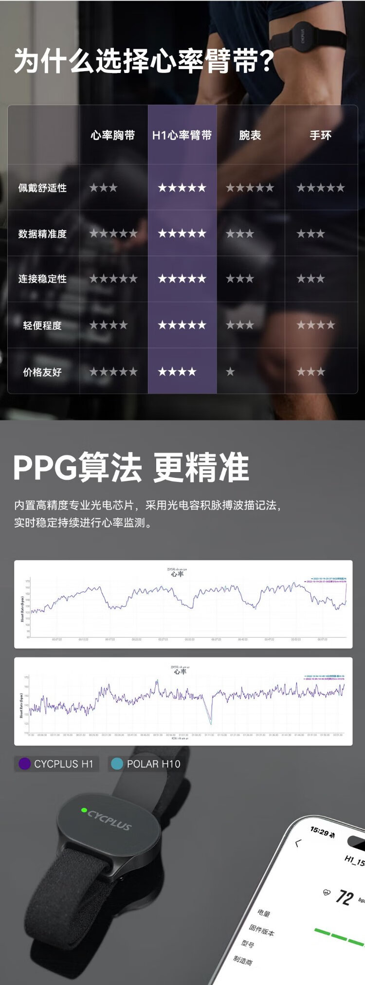 CYCPLUS fitness H1 heart rate band arm band sports optical heart rate monitoring arm band running fitness smart wear
