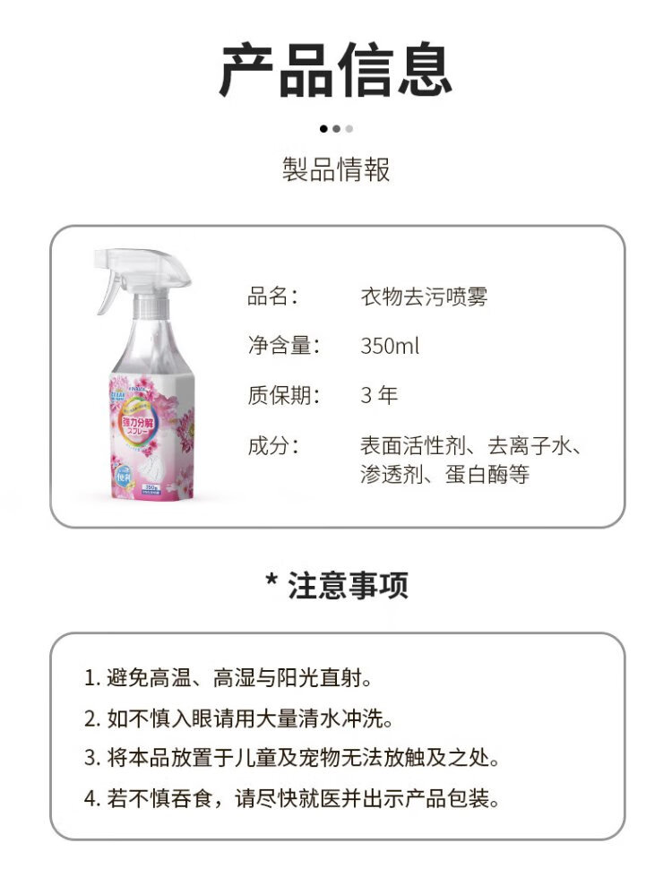 Kinbata clothing penetrant 350ml degreasing detergent dry cleaning down jacket clothes degreasing laundry artifact