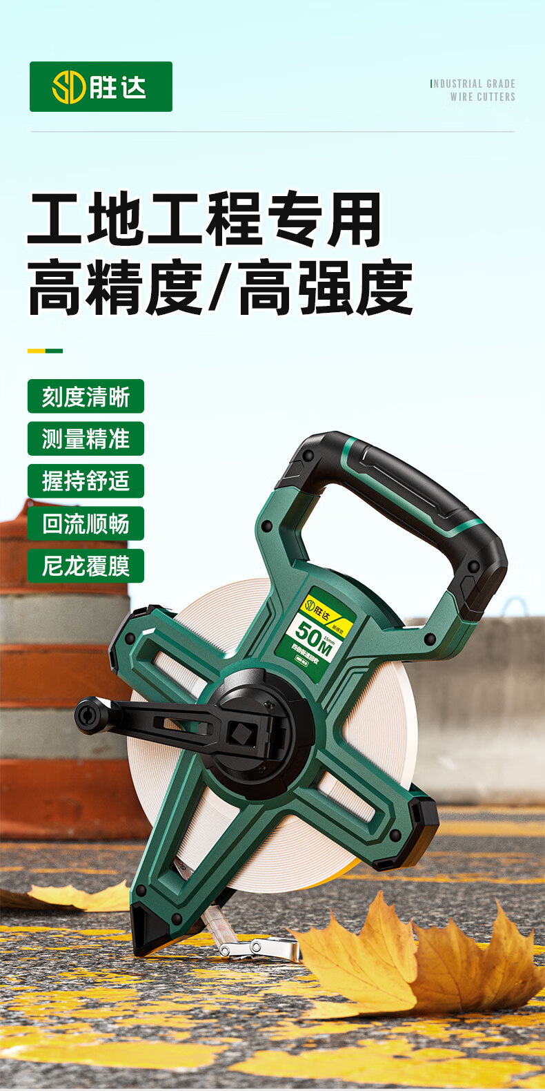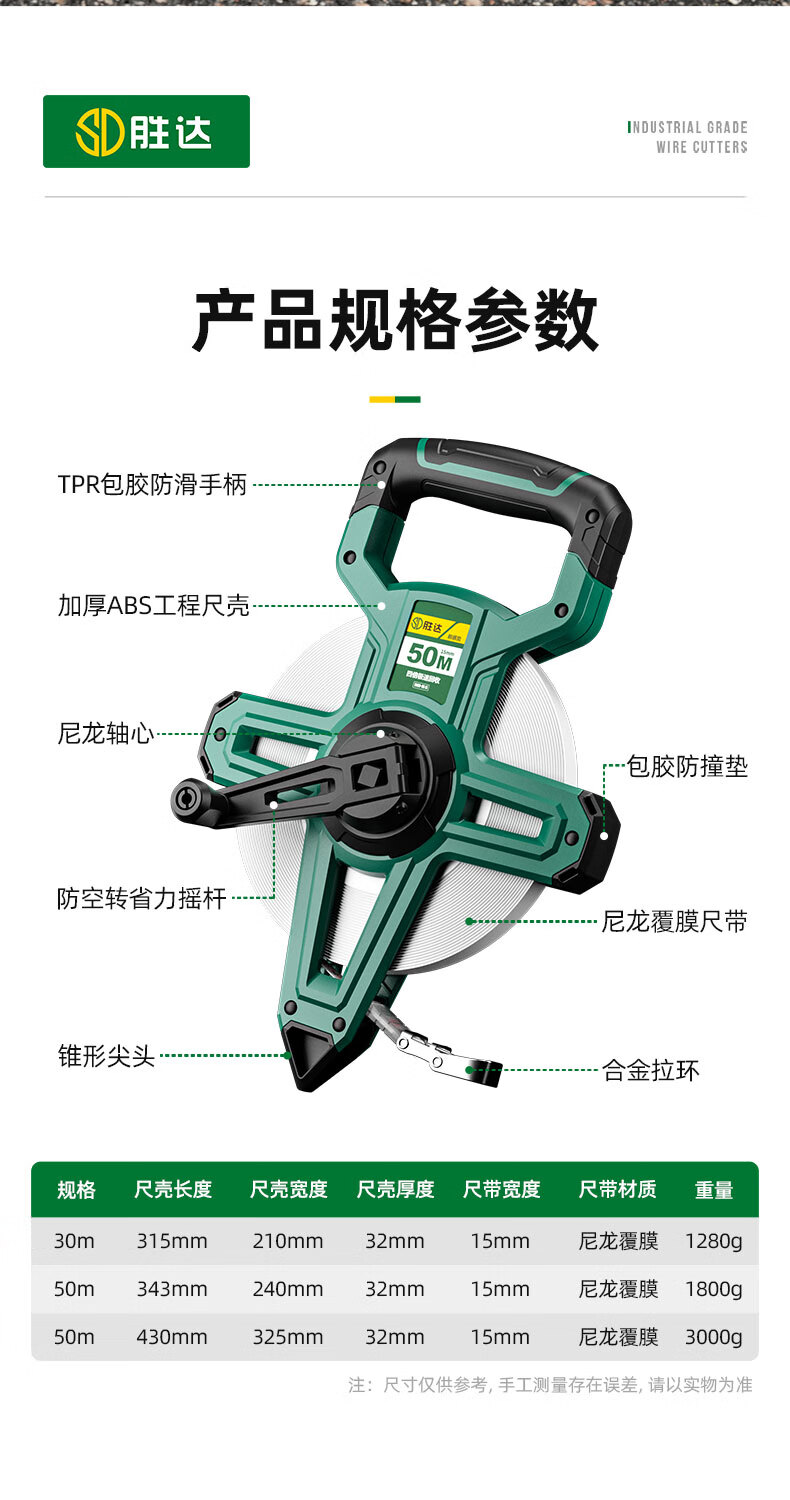 Shengda tape measure fiber ruler 100 meters rack type PVC fiberglass tape measure disc type tape measure engineering measurement tape