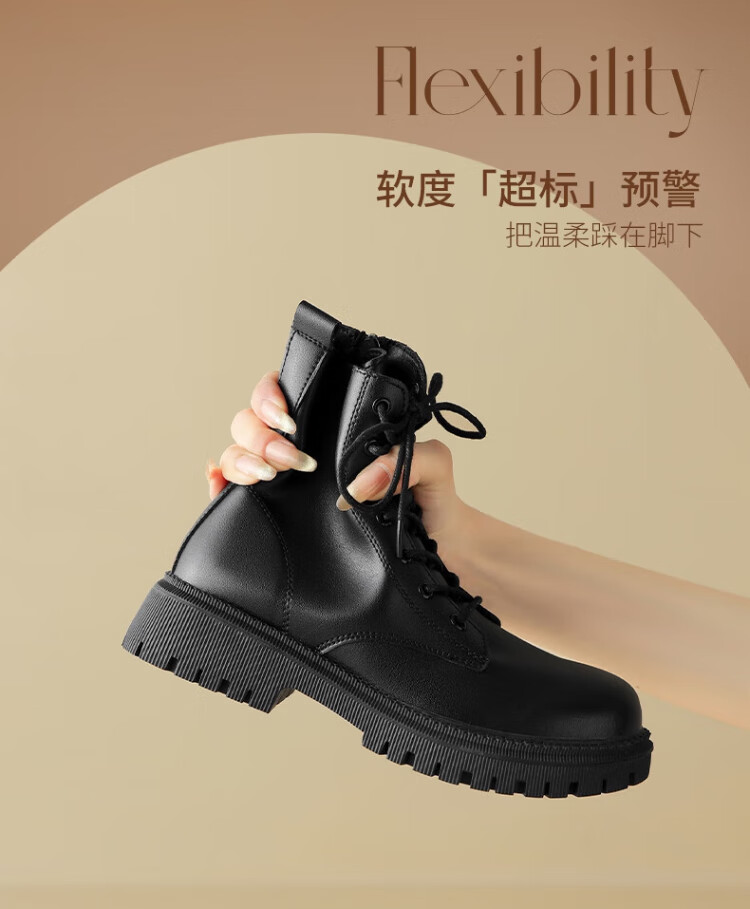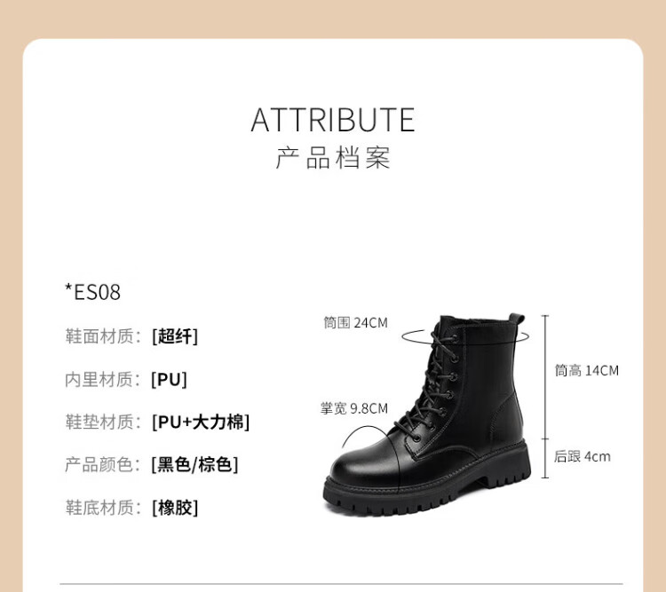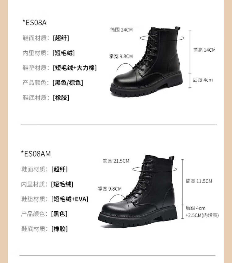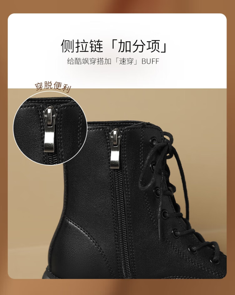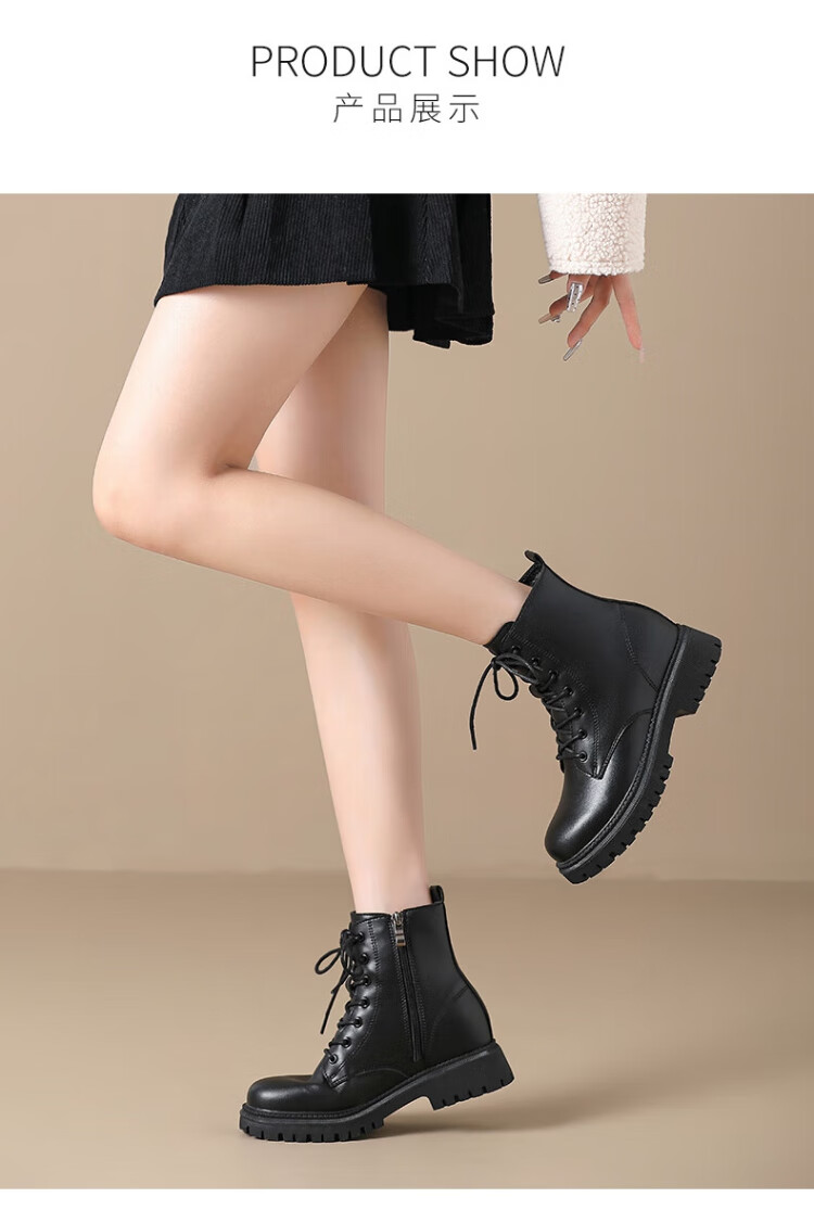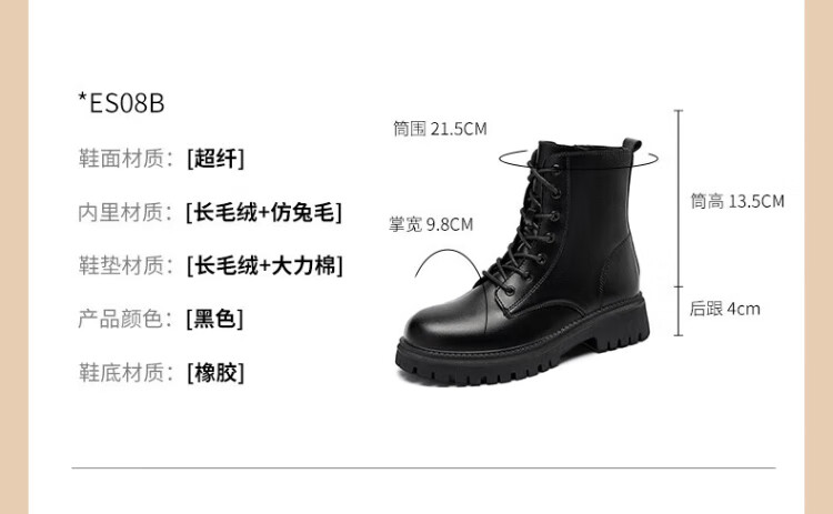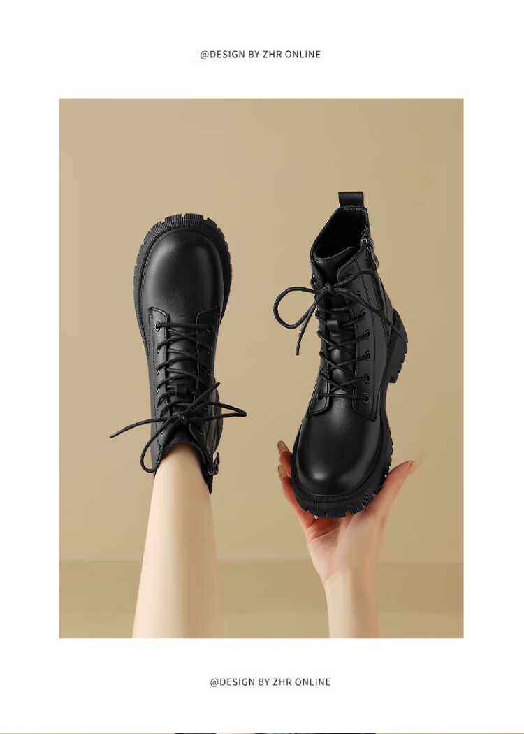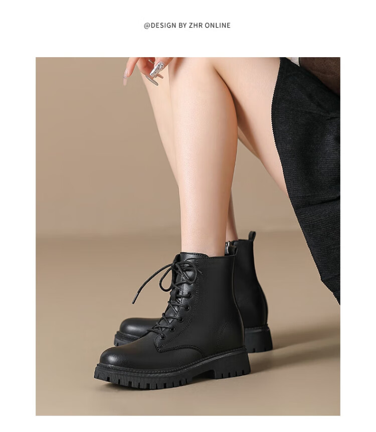 ZHR Martin boots women's autumn and winter retro British boots women's fashion versatile plus velvet short boots women ES08A black 38