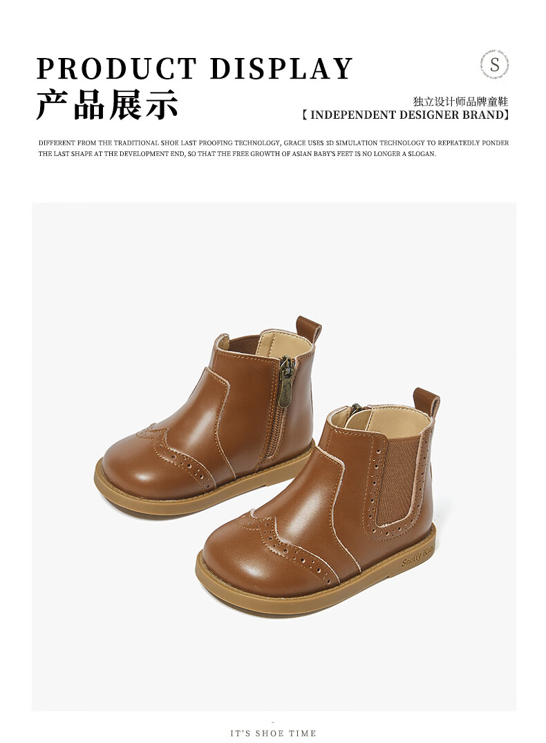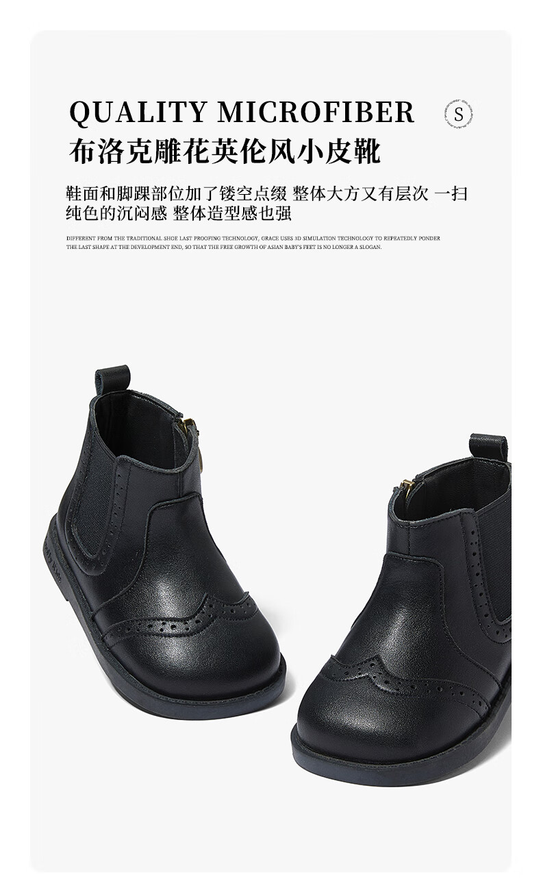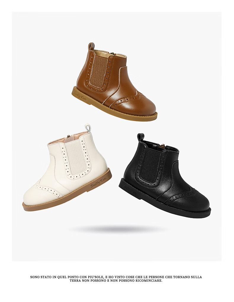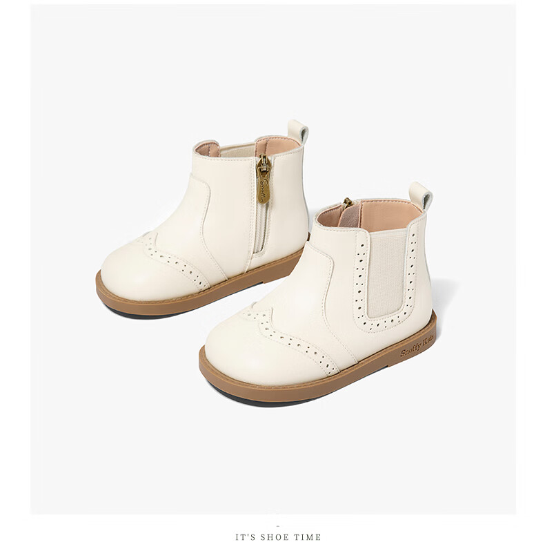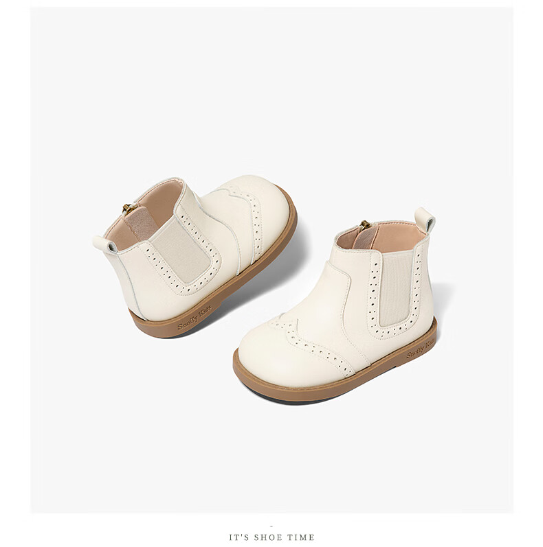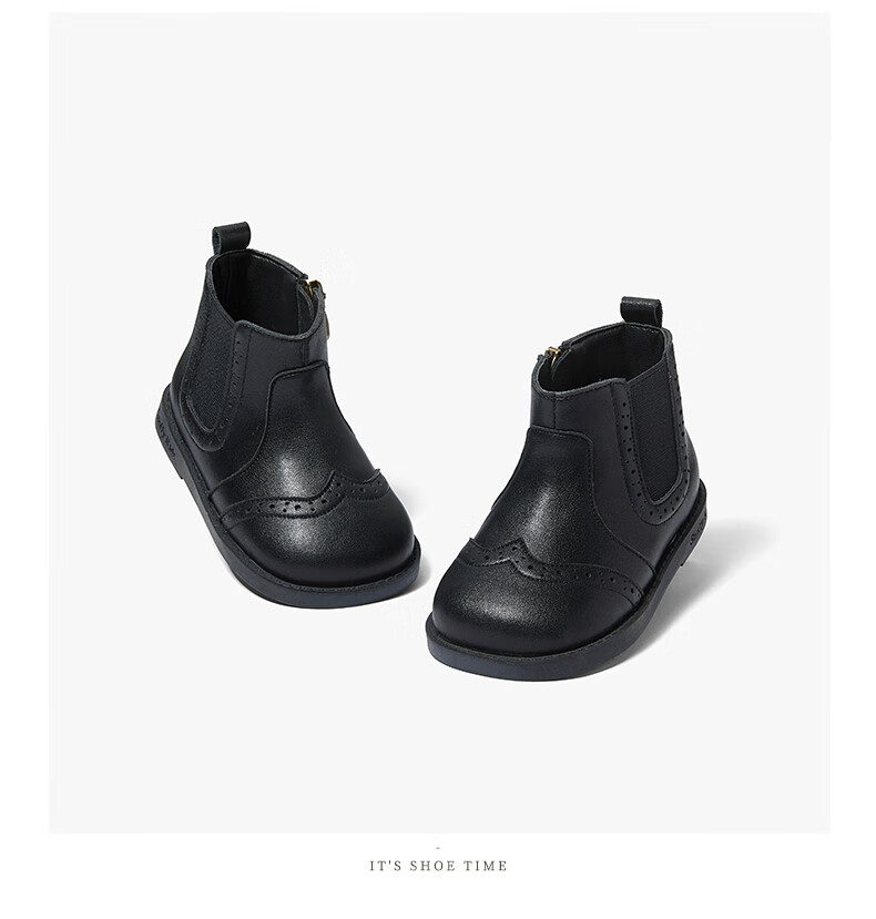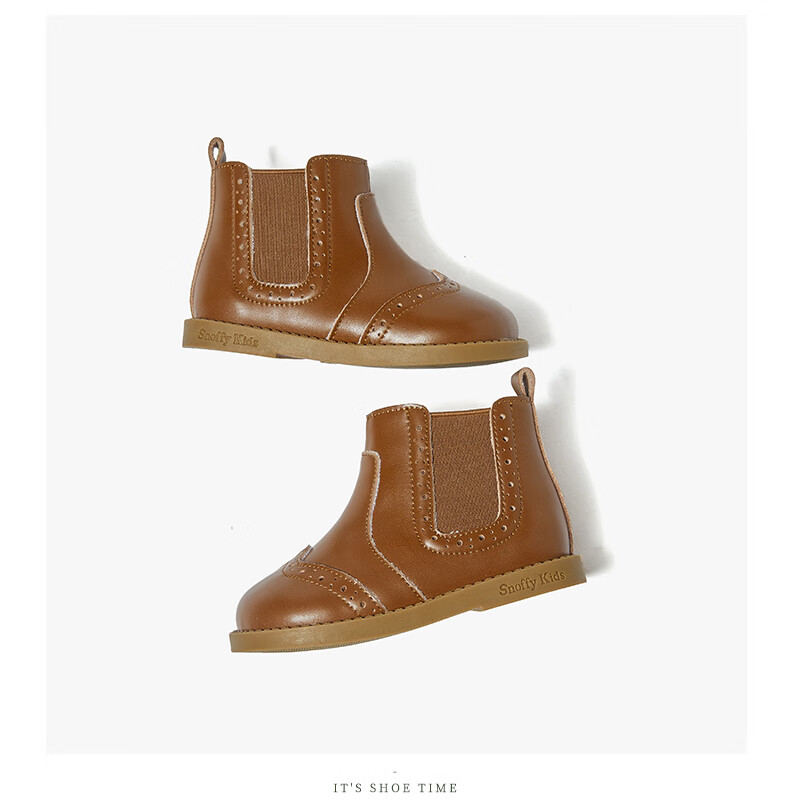Snuffy children's boots autumn and winter girls' short boots comfortable soft sole baby Chelsea boots girls casual boots tar black 28