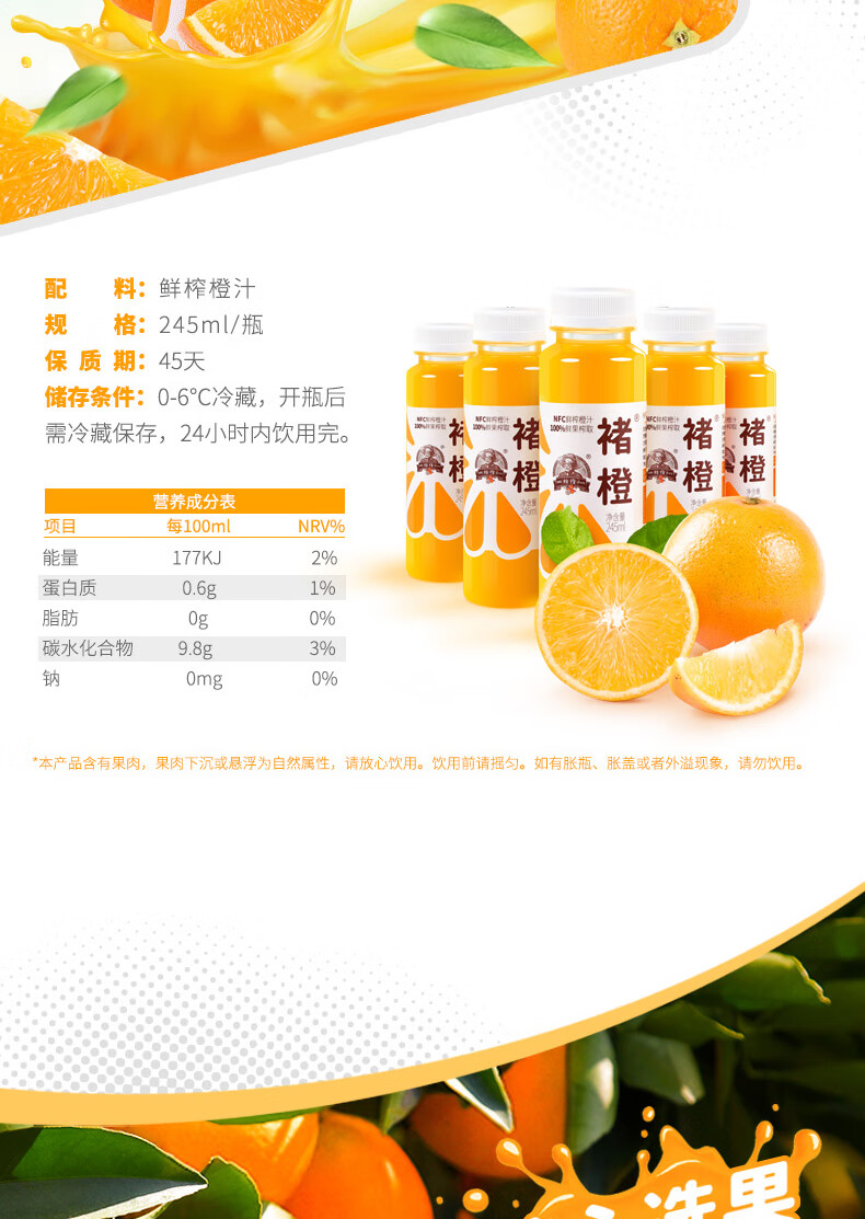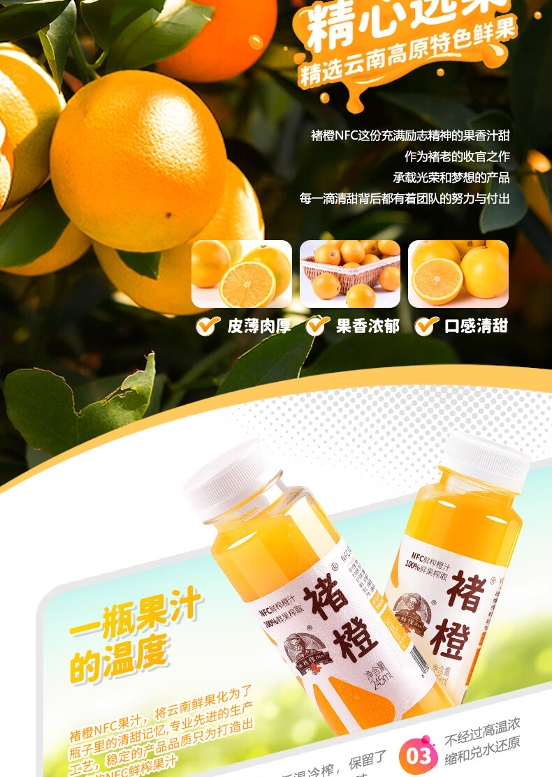 Chu Cheng 100% NFC freshly squeezed orange juice zero-added non-concentrated reduced juice 245ml*12 bottles for dining and camping