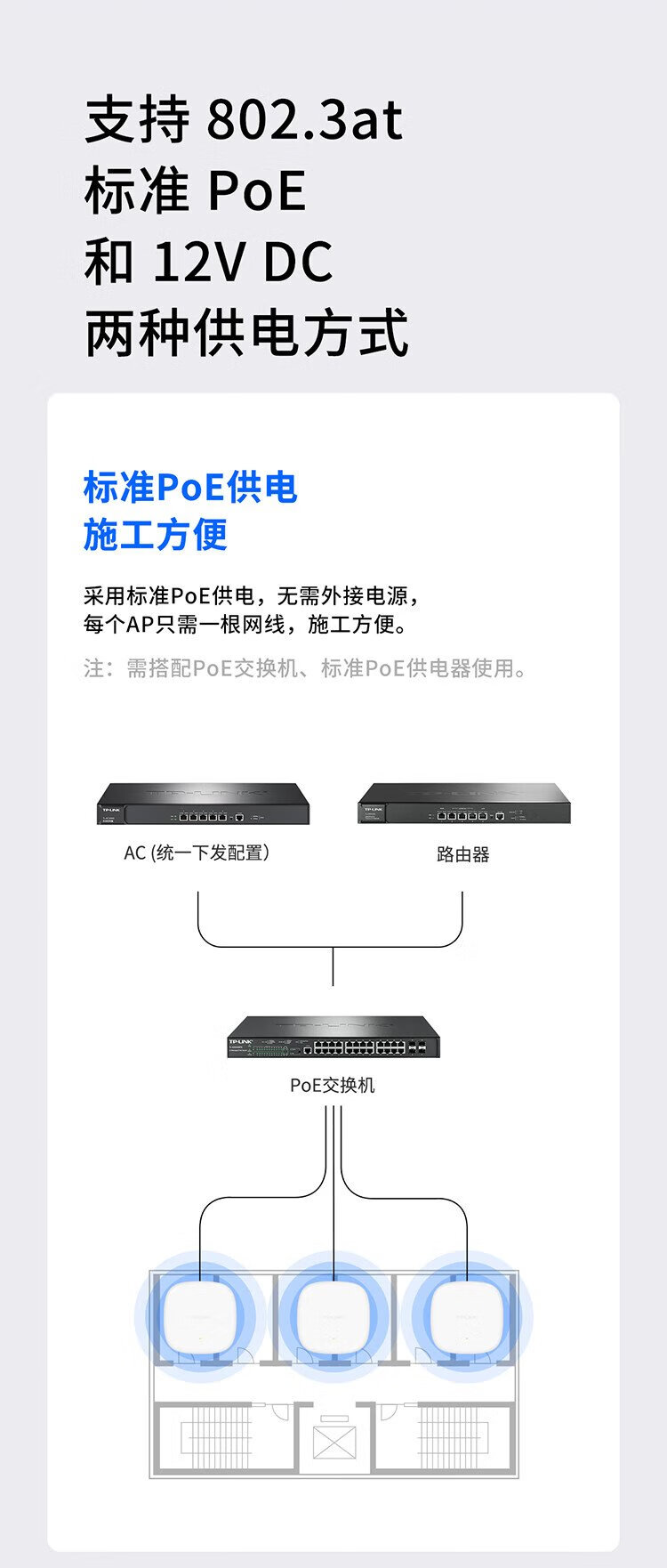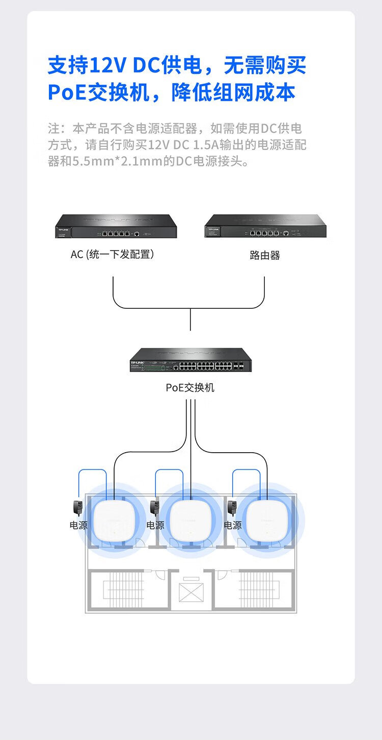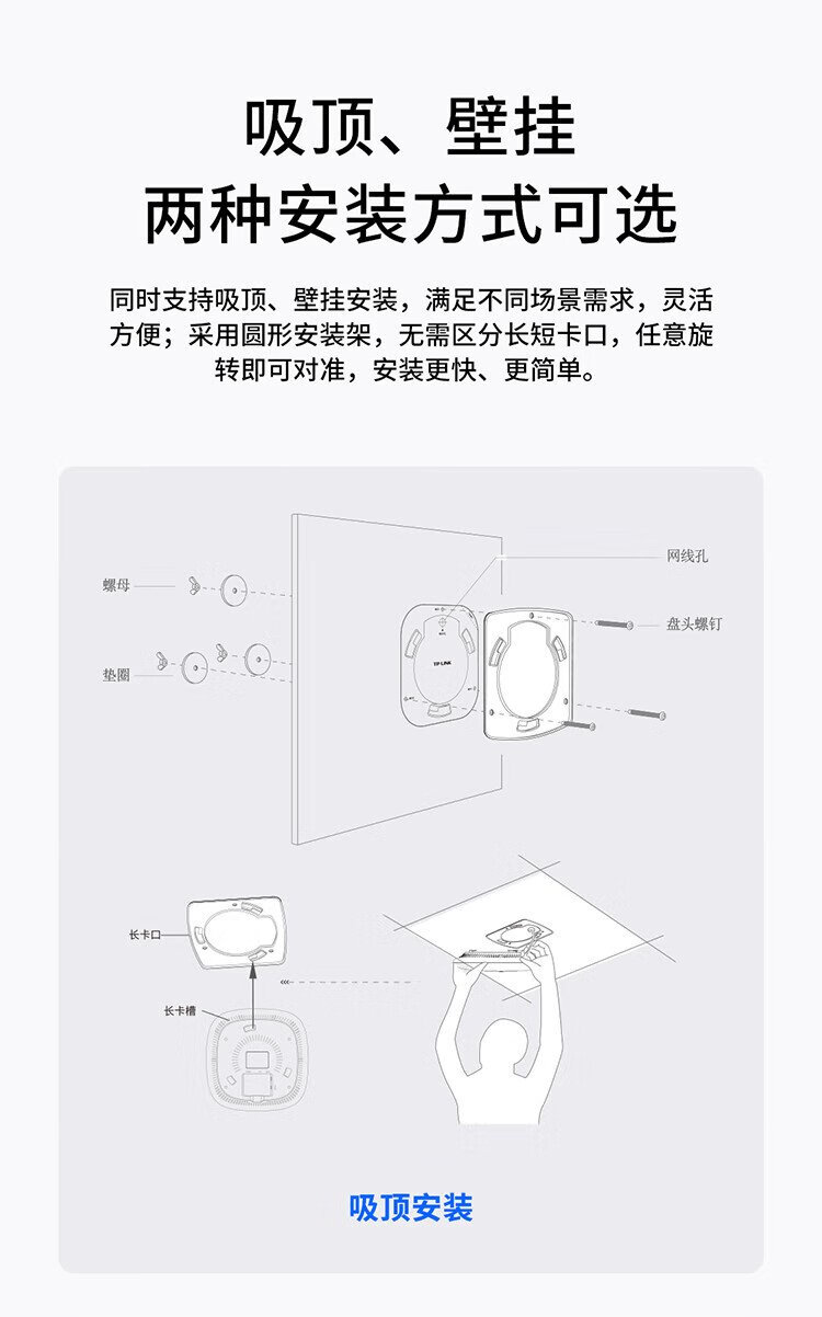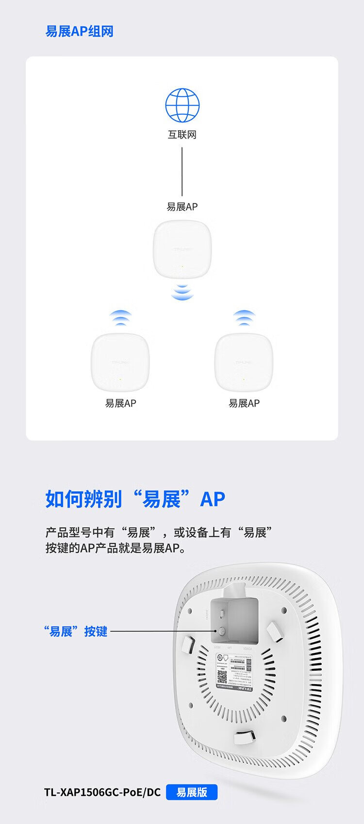 Pulian (TP-LINK) WIFI6 Yizhan ceiling AP AX1500 dual-band Gigabit router home and commercial use Poe power supply TL-XAP1506GC-PoE/DC Yizhan version